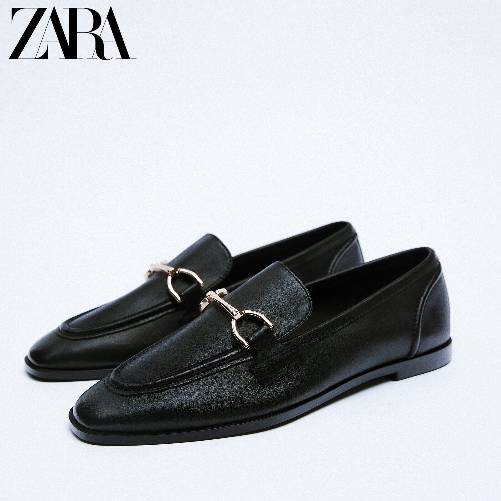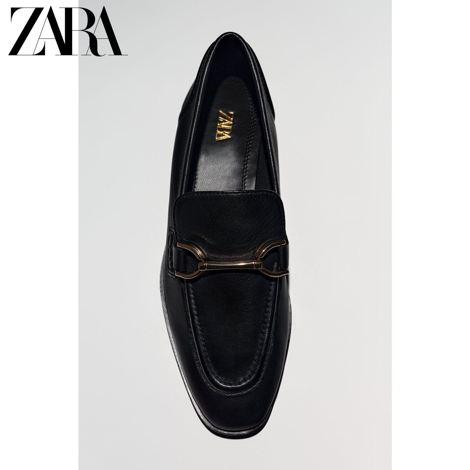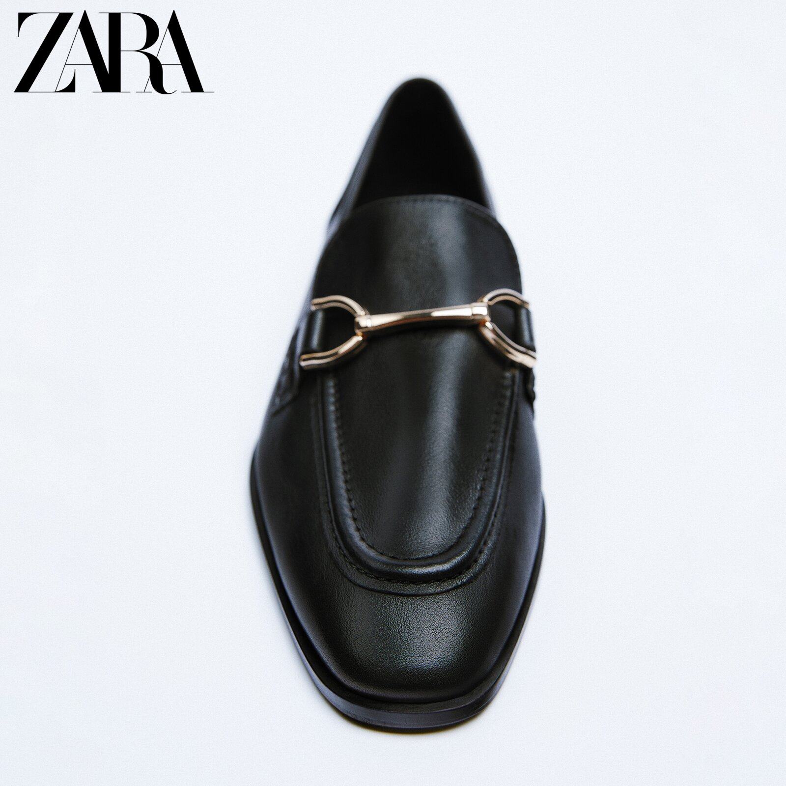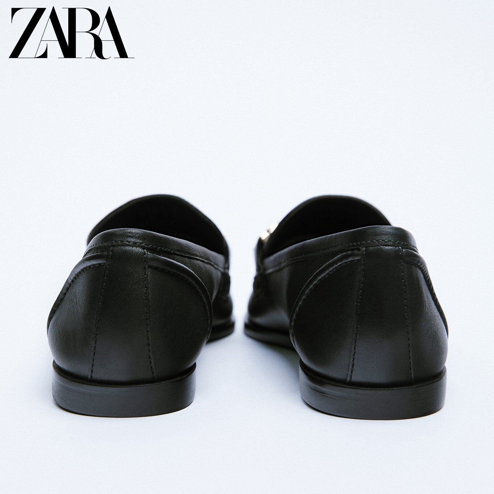 ZARA autumn new women's shoes black leather boat shoes casual loafers 2512810 040