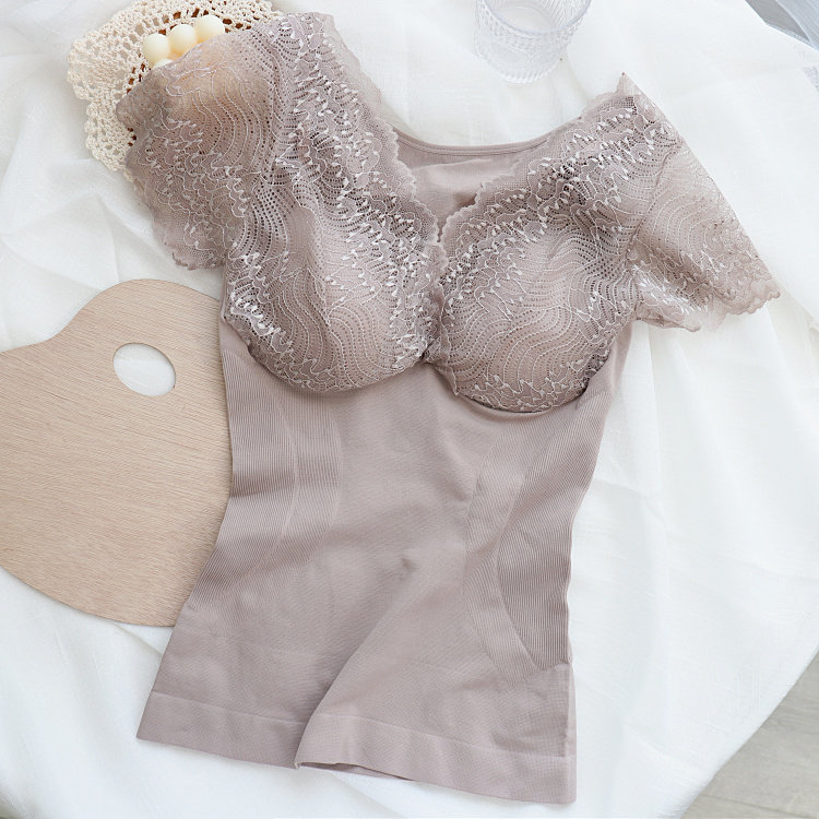 Sedena Seamless Leka Shapewear Beauty blouse with bra Lace Lace Lace lace Short sleeves Women Thin Jersey-Taobao