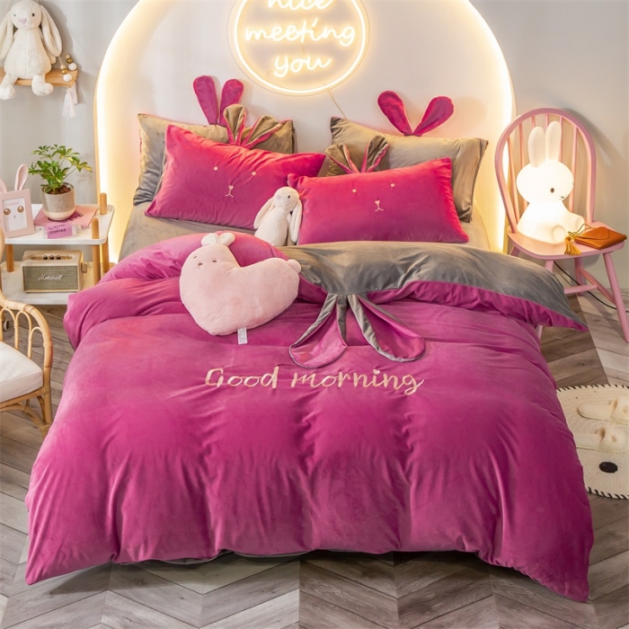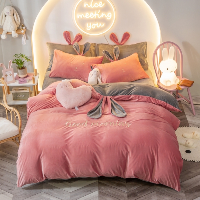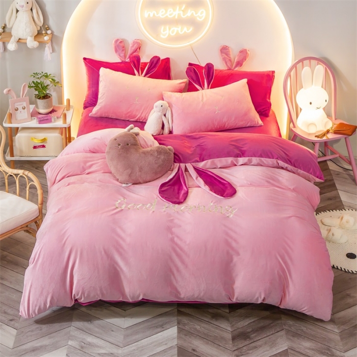 (100 people inspection) baby velvet four-piece double-sided thickening quilt cover warm velvet bed sheet milk velvet winter princess style
