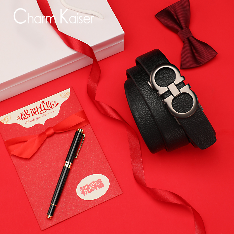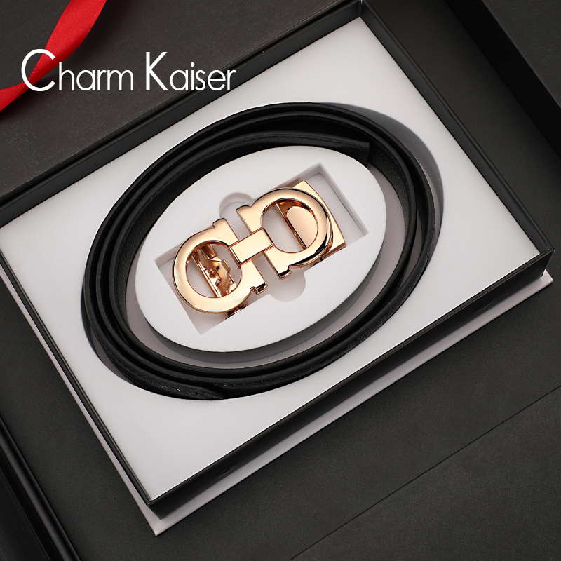 Small CK belt male tide top layer leather automatic buckle belt young boy hundred tower pants belt student men's belt