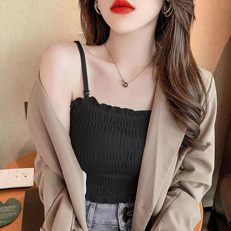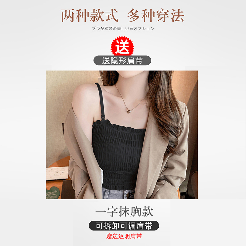 One-word trabbing sling female small chest flat chest special thickening gathering student girl wearing bottom ice silk vest summer