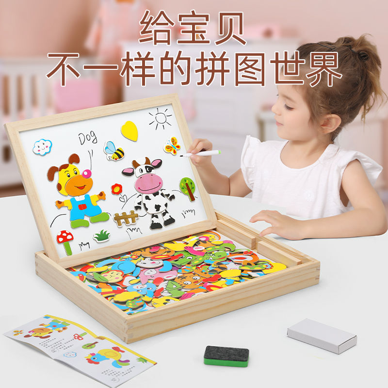 Chinese zodiac puzzle 43 pieces learning tiles Chinese zodiac puzzle cartoon girl dress-up puzzle (upgrade wooden pumping fantasy animal park puzzle joyful transportation model puzzle digital jigsaw puzzle puzzle)