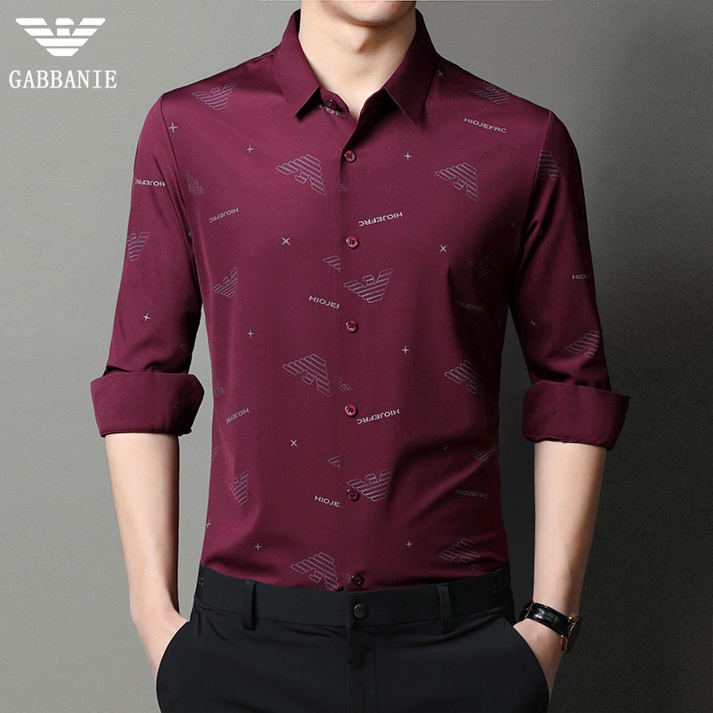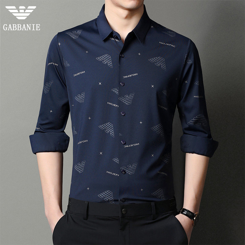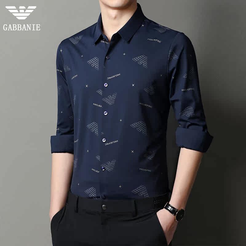 Chiamania autumn shirt men's long sleeve Korean printed casual inch business men's drape shirt thin