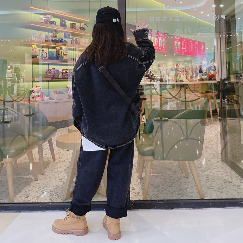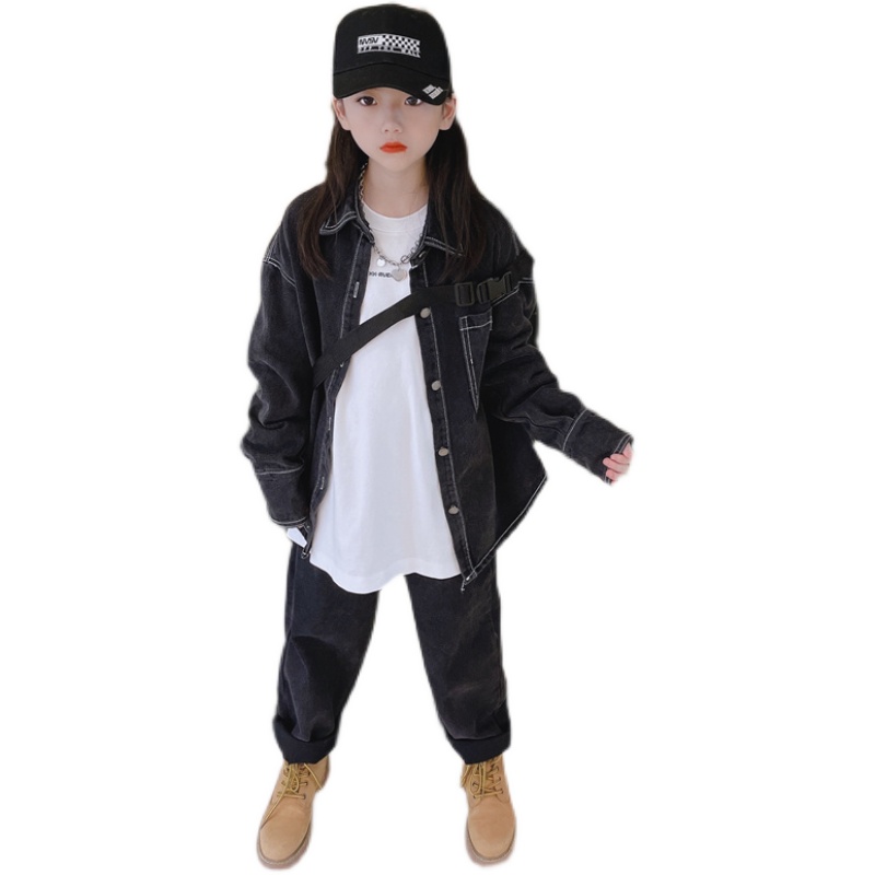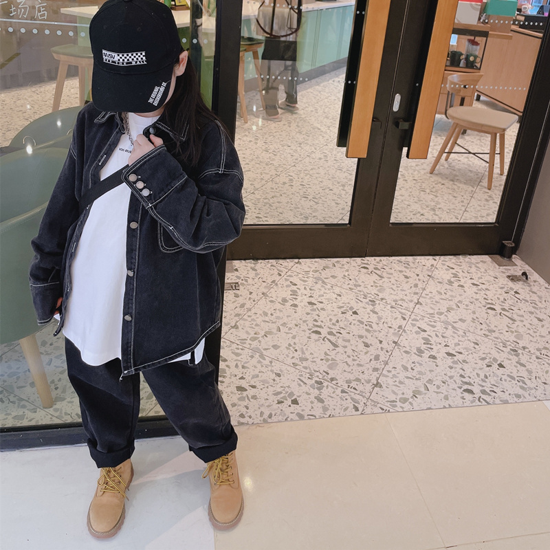 Child Denim Shirt 2021 New Foreign Pie Autumn Clothing Boy Girl Outside Wearing Jacket CUHK Boy Trendy Boy Fashion Tide