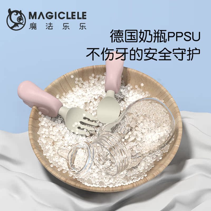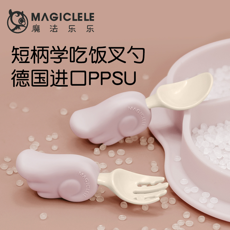 Magic Lele baby spoon learn to eat training small baby food supplement short handle silicone spoon fork children's tableware set