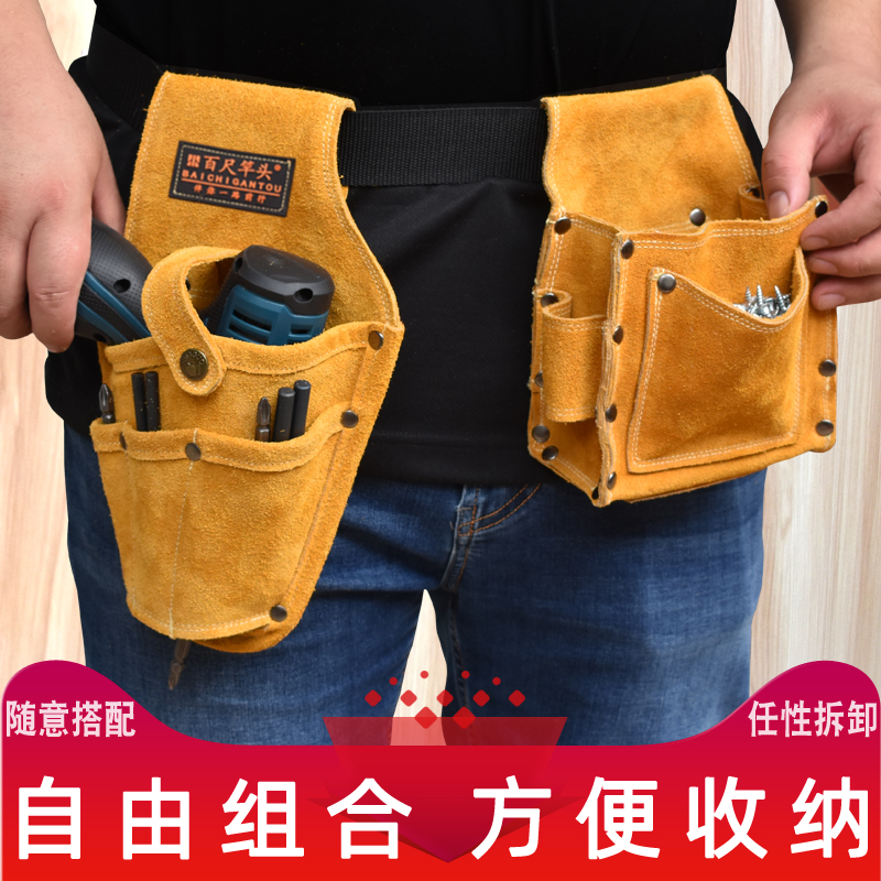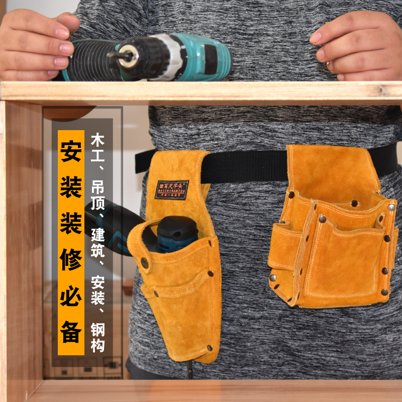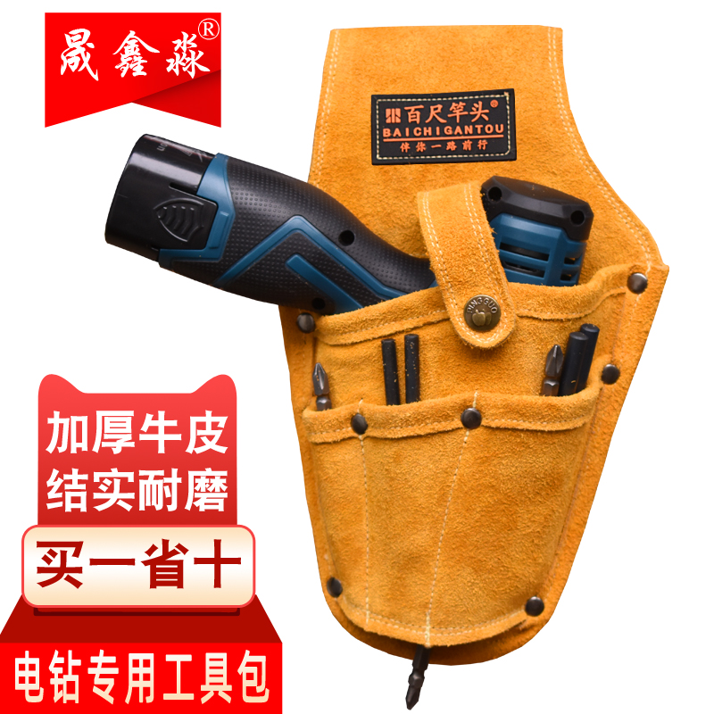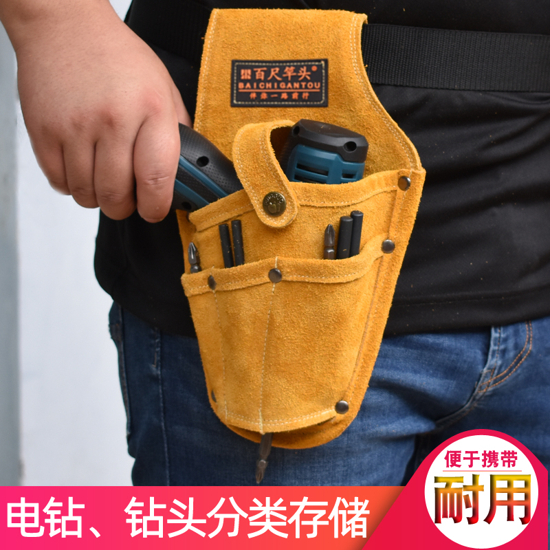 Leather electric drill bag lithium electric drill storage bag electric drill pocket bag rechargeable drill tool kit repair and installation electrician bag