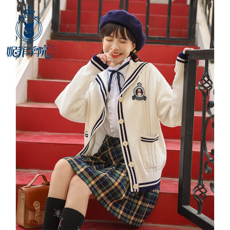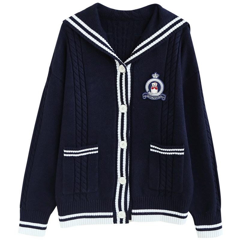 College Wind Needles Sweater Sweater Jacket Navy Collar Jk Uniforms Teenage Girls Junior High School High School Students Autumn Winter Dress Cardiovert Suits