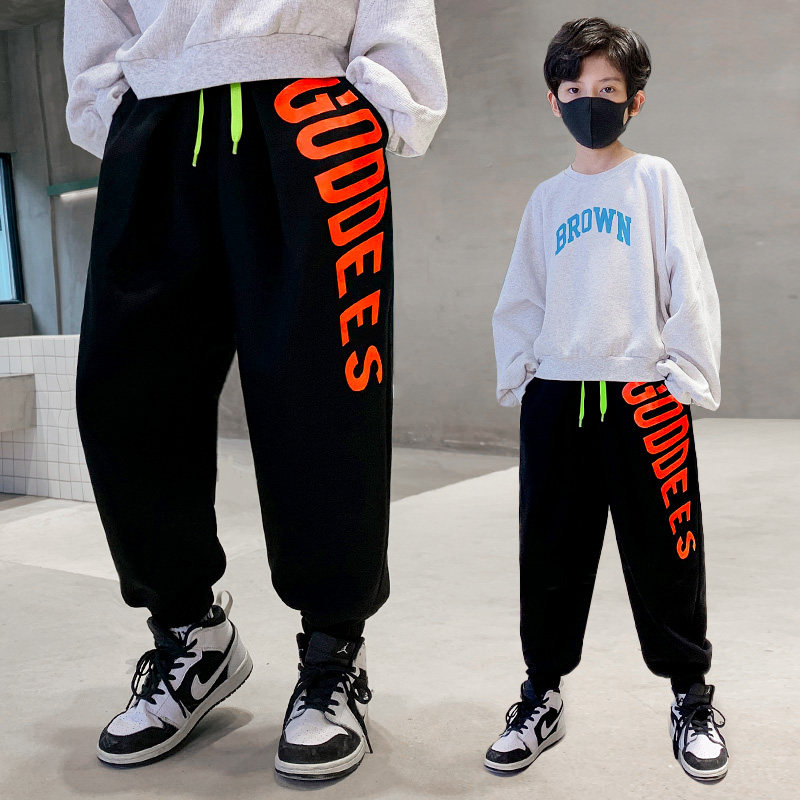 Children's sports pants spring autumn style 2022 new foreign school CUHK boy handsome boy handsome boy fall loose casual thick cotton pants