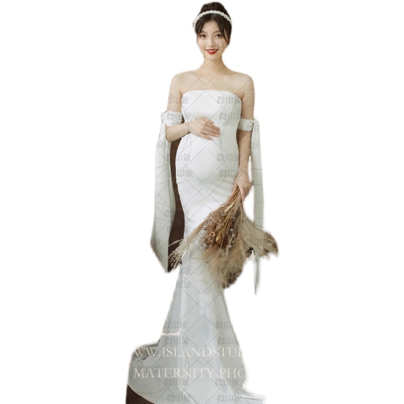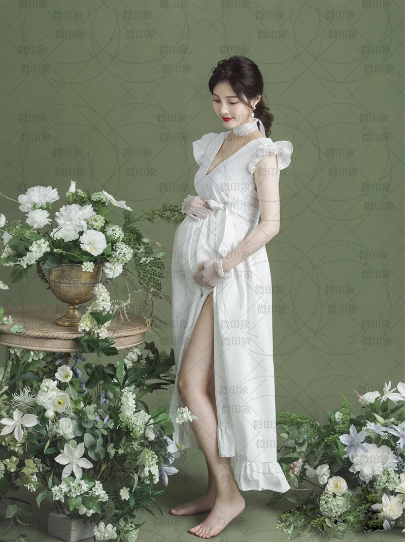1221 photo studio new fashion pregnant women photo retro pictorial style photo Mori white dress photo theme clothing