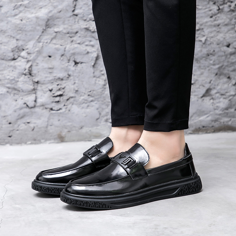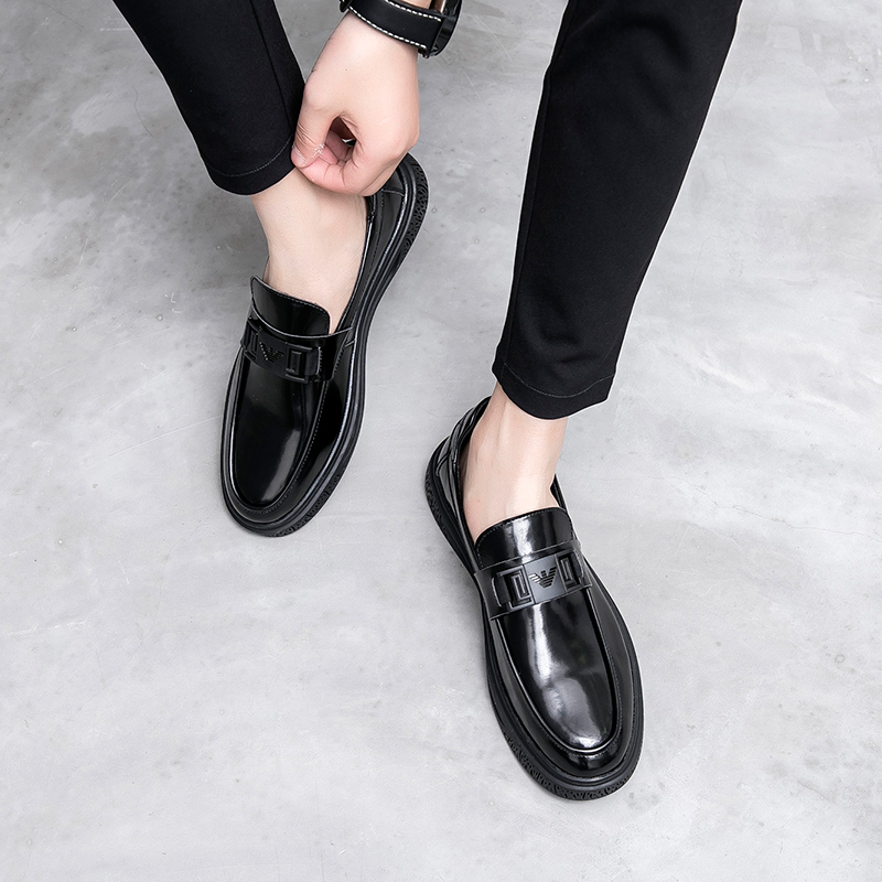 Lefoes shoes 2022 Spring casual leather shoes Inn Wind Business Youth Heightening Men's Shoes Boomer Shoes 100 hitch a foot pedal