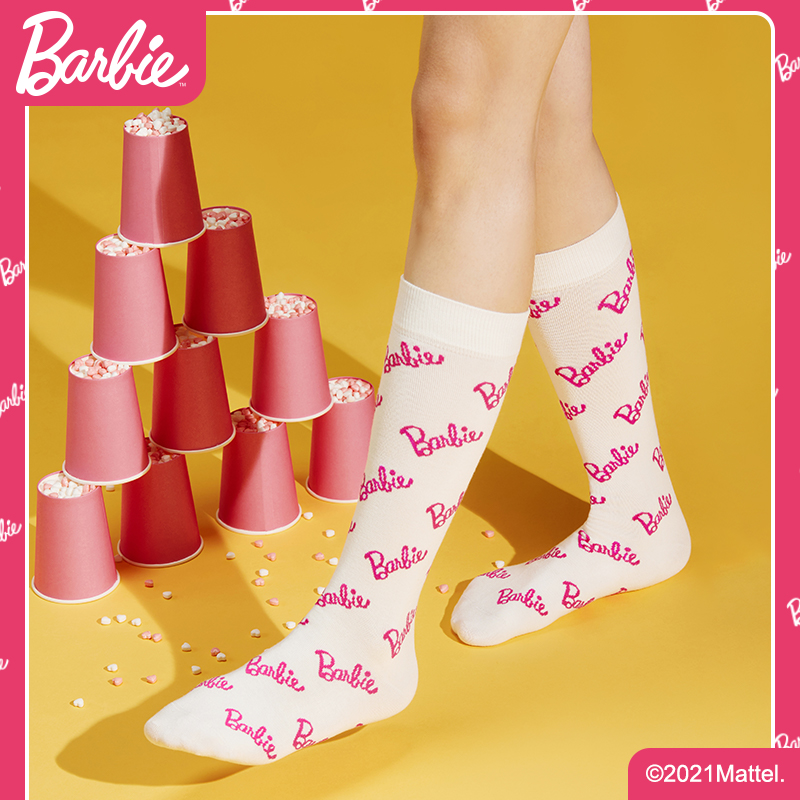 Miss Curious Barbie sports European and American tide socks in the tube socks letter jacquard cotton comfortable all-match women's socks autumn and winter