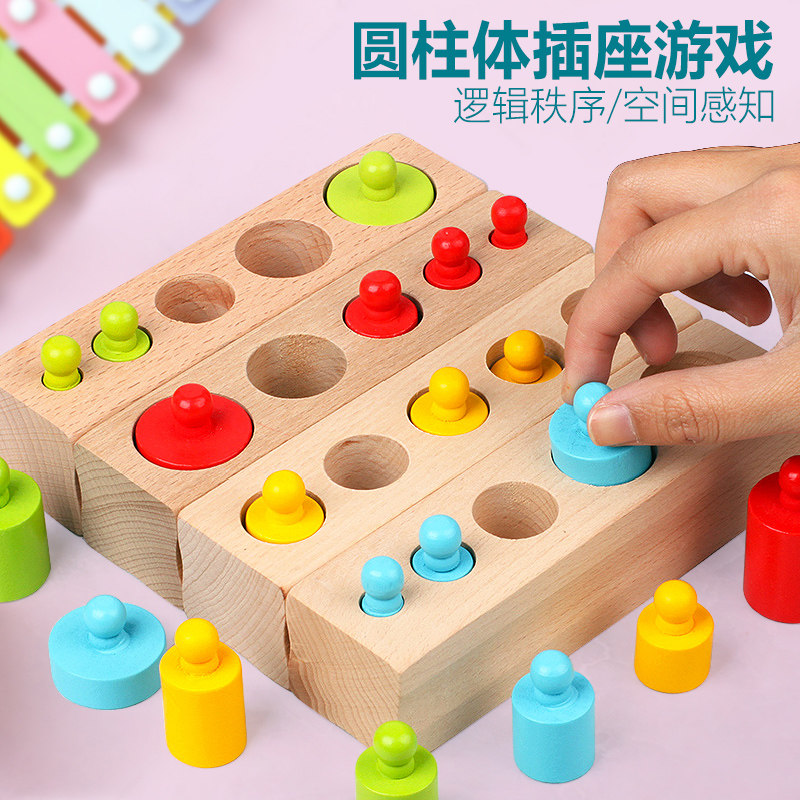 Montessori teaching aids puzzle early education cylindrical socket toys 1-2 years old 3 infants and young children finger fine motor training