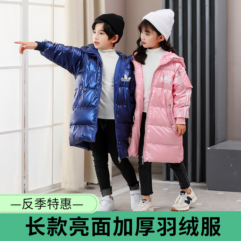 Anti-season promotion of children's down clothes with long version of girl's long version over knee boy Chaude thickened and free of washing CUHK children's winter