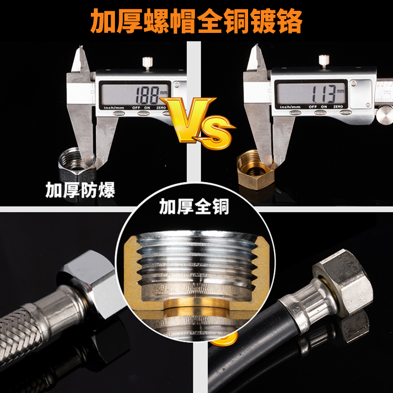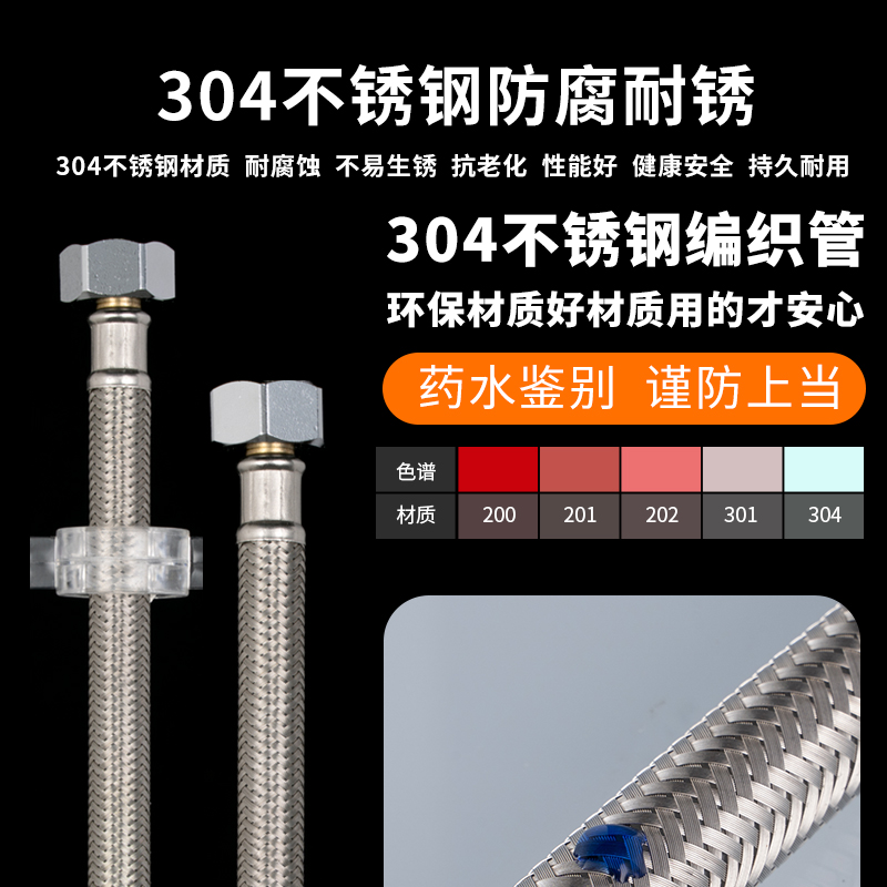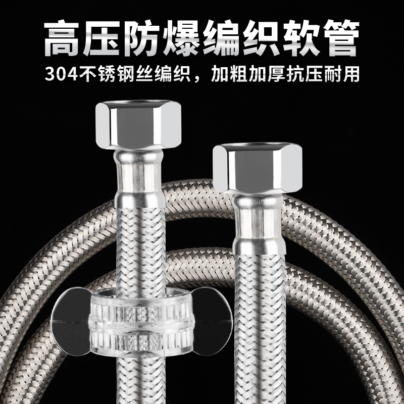 Bright class 304 stainless steel metal bellows braided hot and cold water inlet hose water pipe household toilet water heater 4 points
