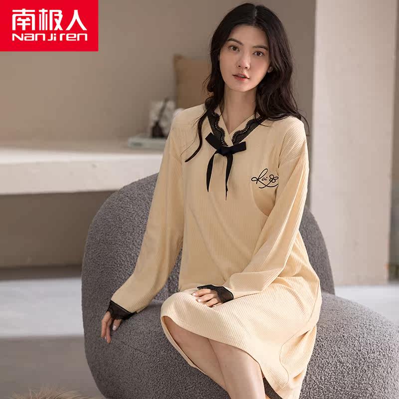 South Pole person with chest cushion sleeping dress female pure cotton long sleeve spring autumn season home in a foreign dress with a long version of loose female pyjamas