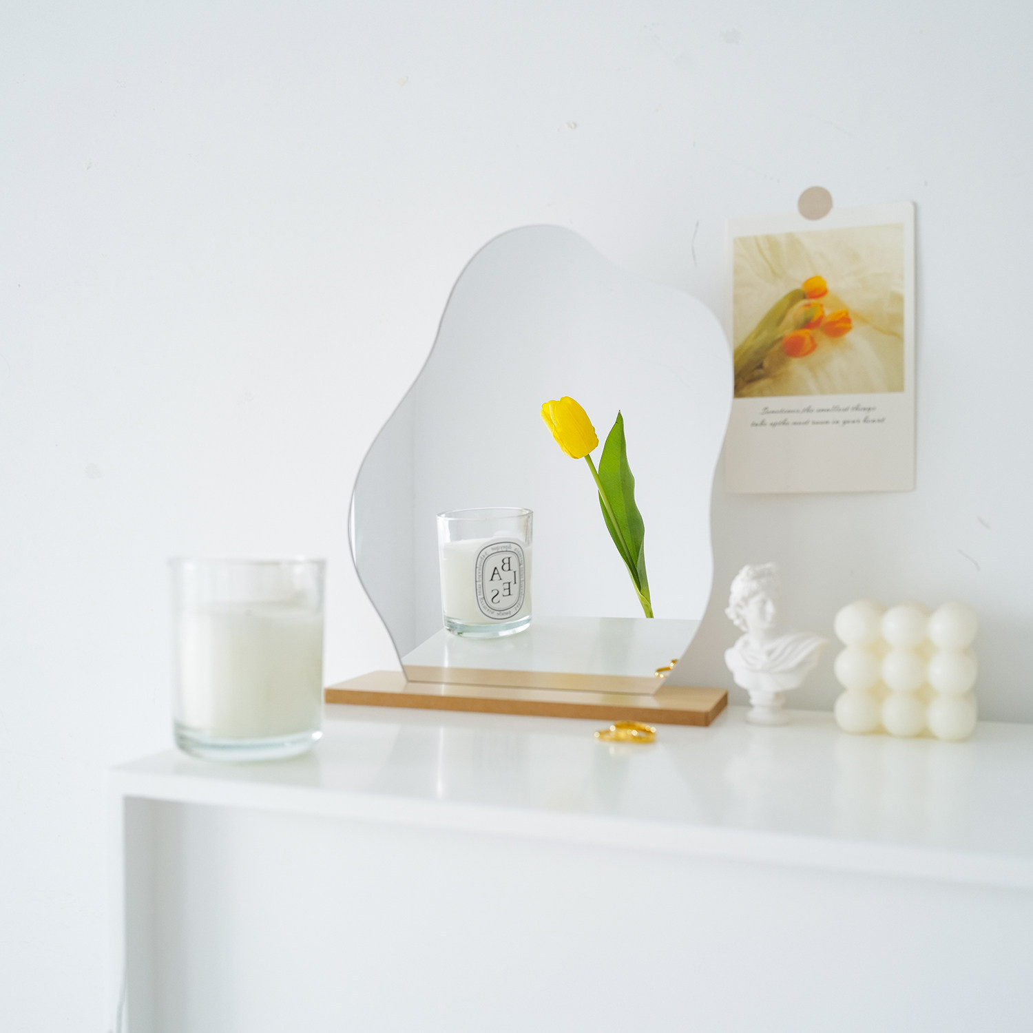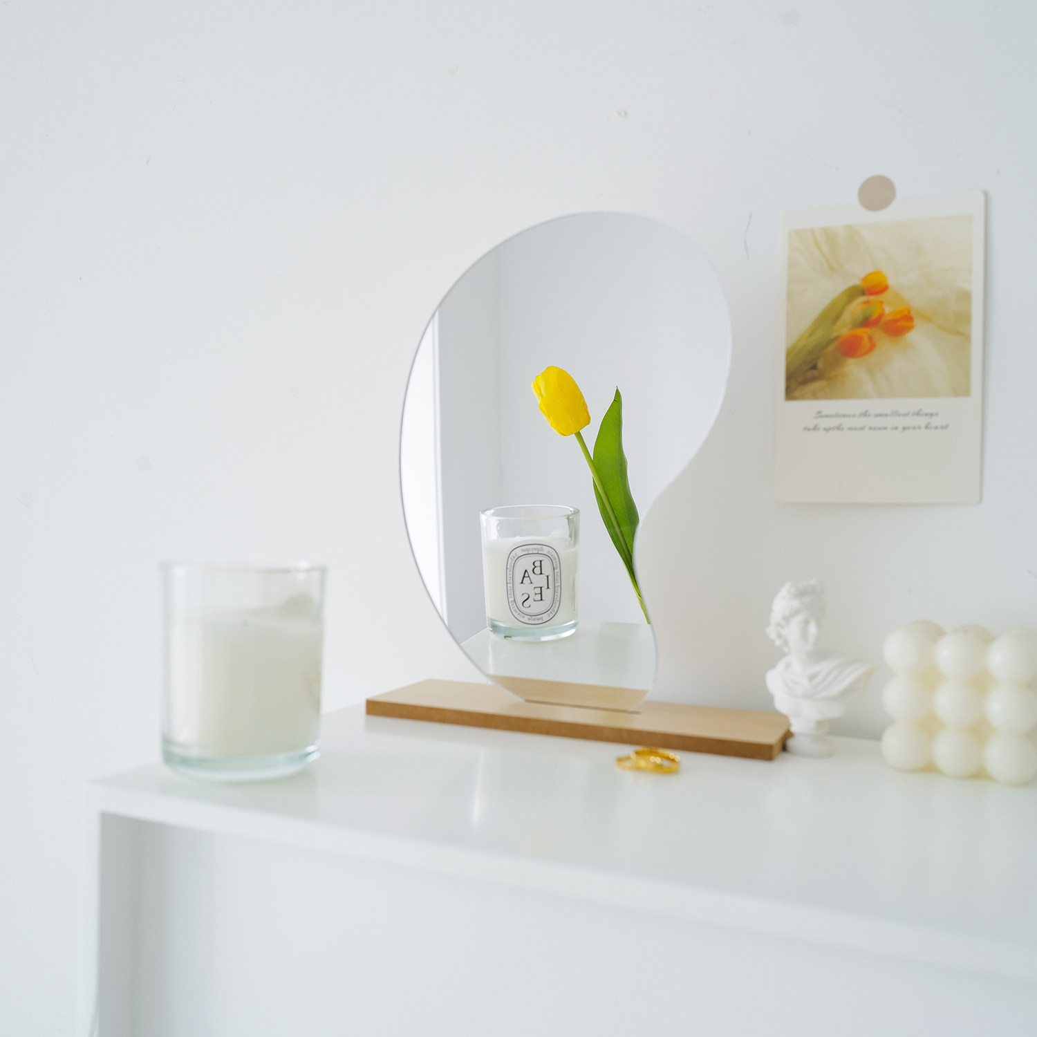 Water drop mirror (with base) Cotton Mirror (with base) The mirror has a film to remember that it is good to tear down
