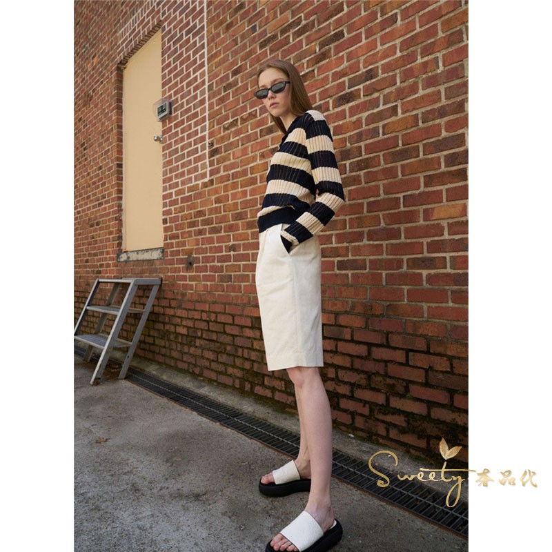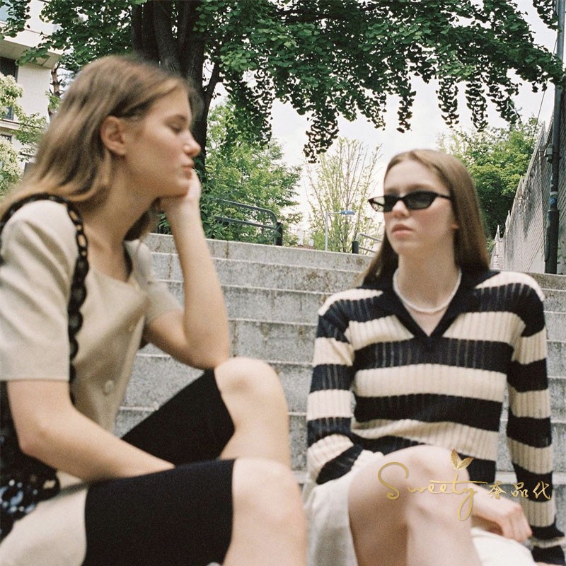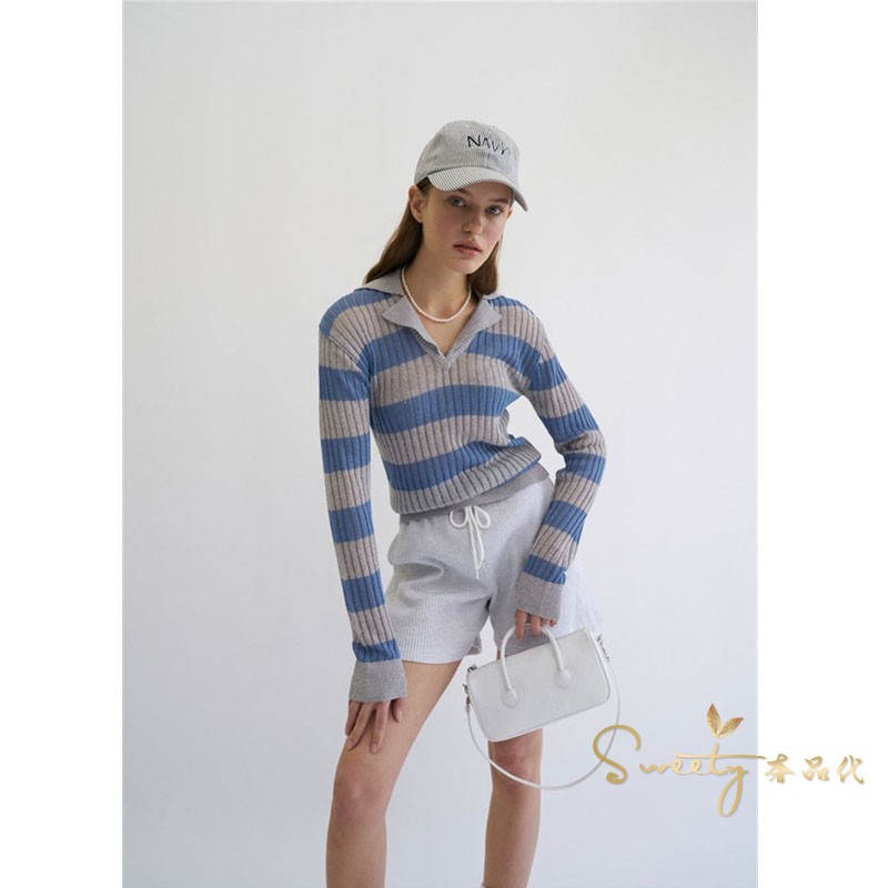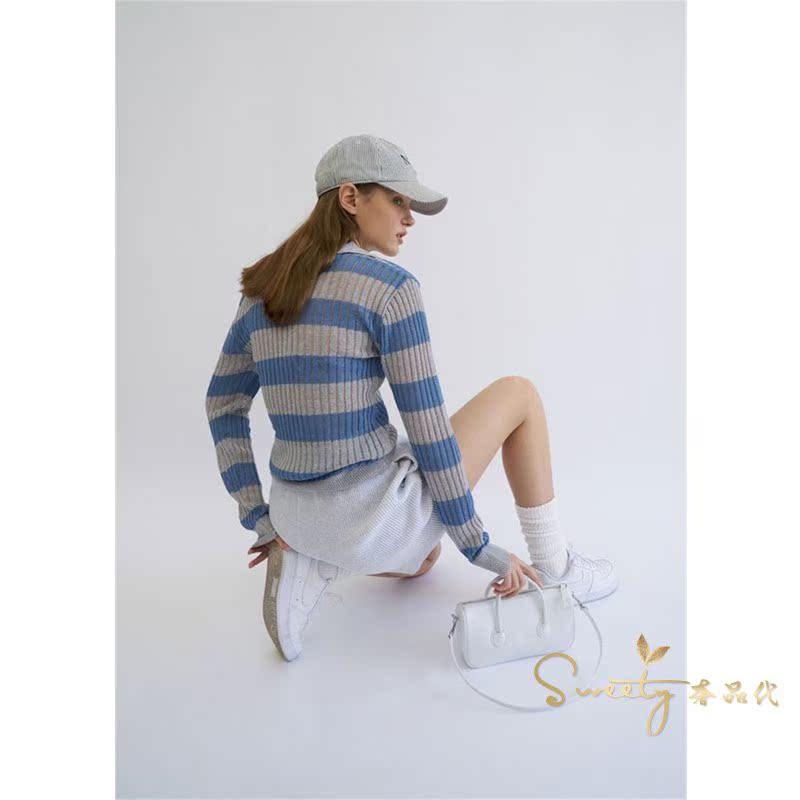 Spot GROVE 21 autumn and winter new light and contrasting color striped long-sleeved V-neck bottoming knitted sweater women
