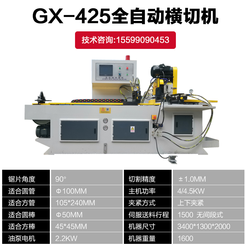 425 fully automatic feed cutting pipe machine numerical control cutting machine round pipe iron steel tube servo burr-free square pipe blanking machine