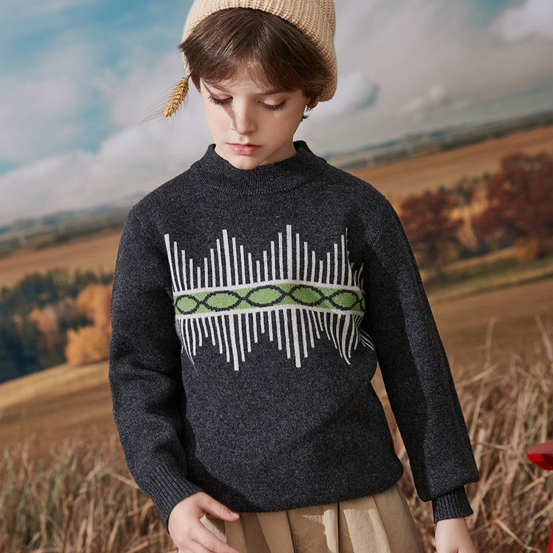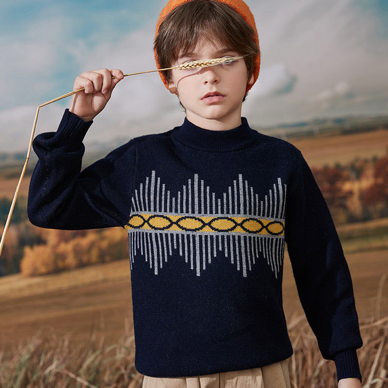 Boys' sweater 100% pure cardigan children's knitted base shirt pullover in big children's sanitary clothing 2021 autumn and winter New