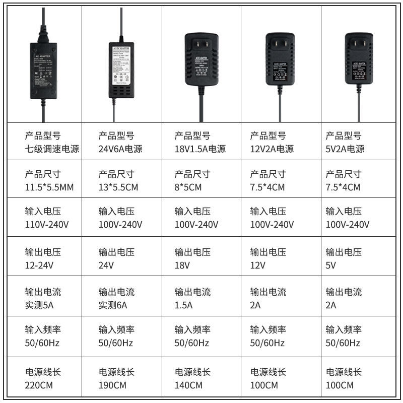 5V2A power supply 12V2A power supply 18V1 5A power supply 24V measured 6A power supply 12-24V measured 5A seven-speed power supply