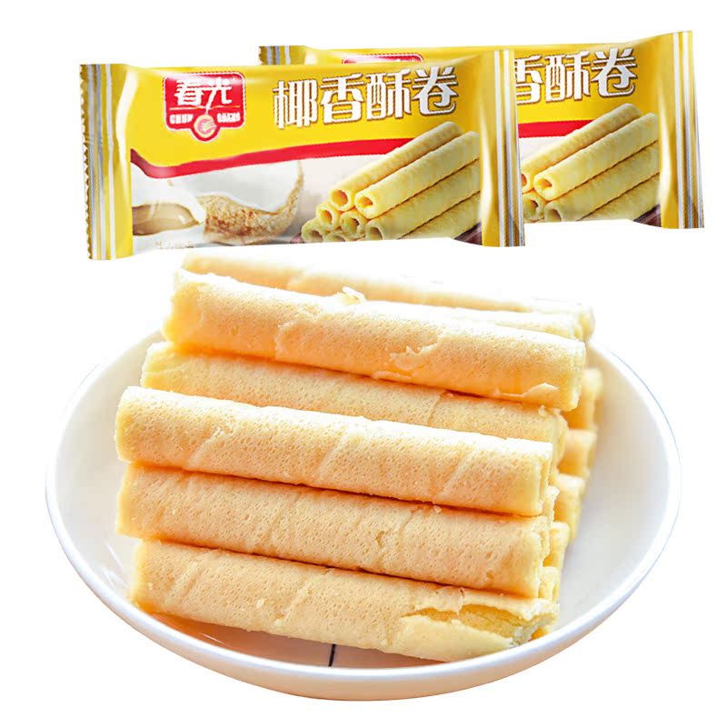 Chunguang Coconut Crispy Rolls 250g*2 copies Crispy rolls bulk snacks crispy sandwich cake coconut flavored egg roll