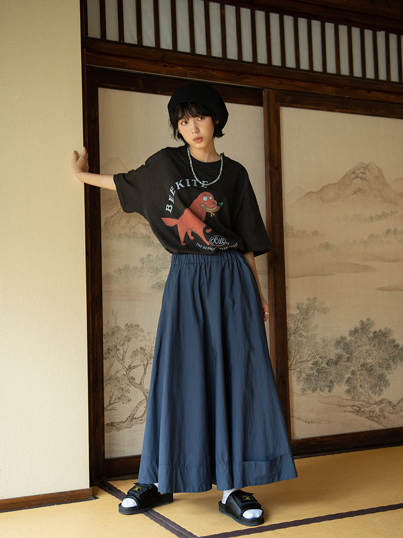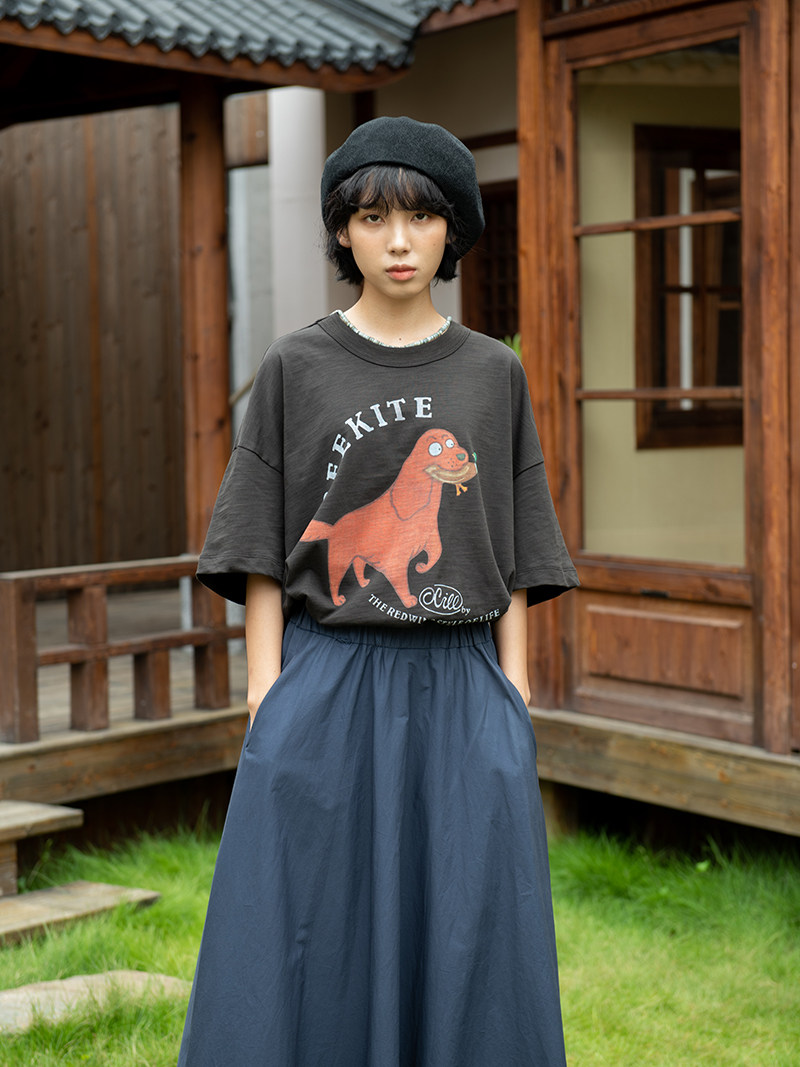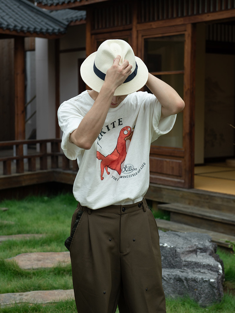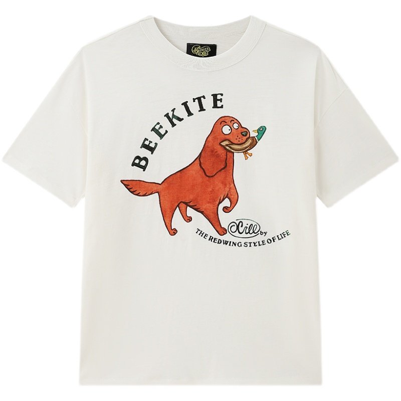 BEEKITE co-branded XILL heavy slub cotton hound with duck print T-shirt Japanese retro loose American comfortable