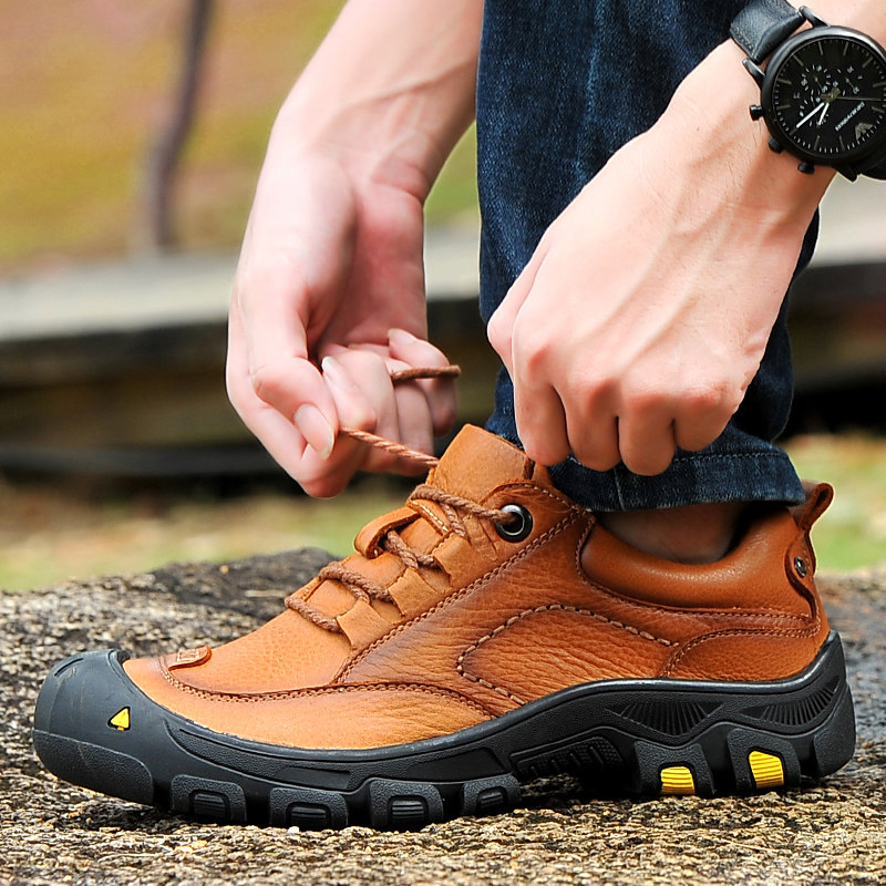 Xiaolangzhi leather outdoor hiking hiking shoes casual shoes men's shoes breathable sports travel shoes large scalp shoes waterproof