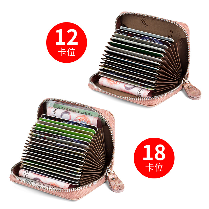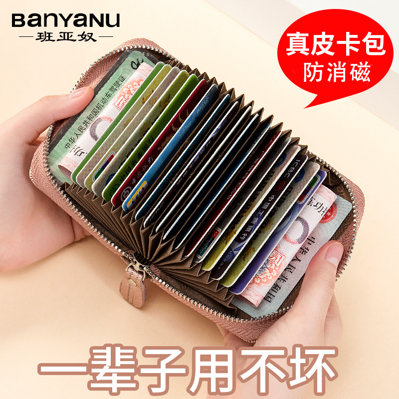 Banyanu card bag ladies genuine leather 2022 new card slots multi-anti-degaussing compact card bag large-capacity card holder