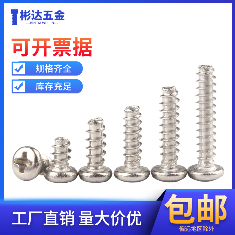 304 stainless steel cross round head flat tail self tapping screw PB disc head screw self tapping screws M1 4-M1 7