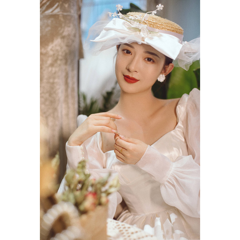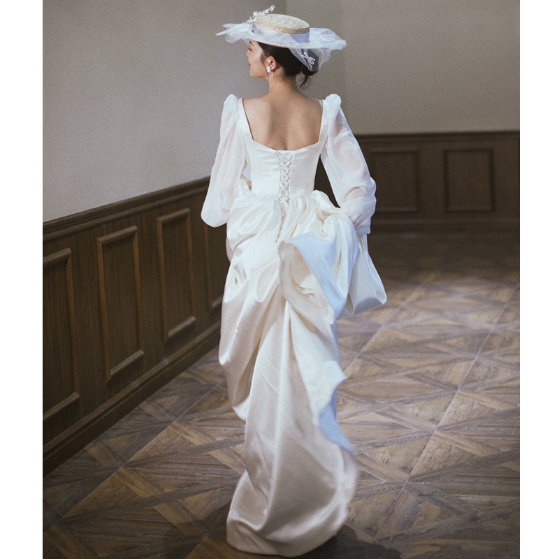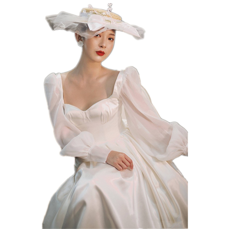 Bride Satin Satin French Super Fairy Brigade Short Long Left 2022 New Bride Married Dragon Wedding Outdoor Drawing Dressing