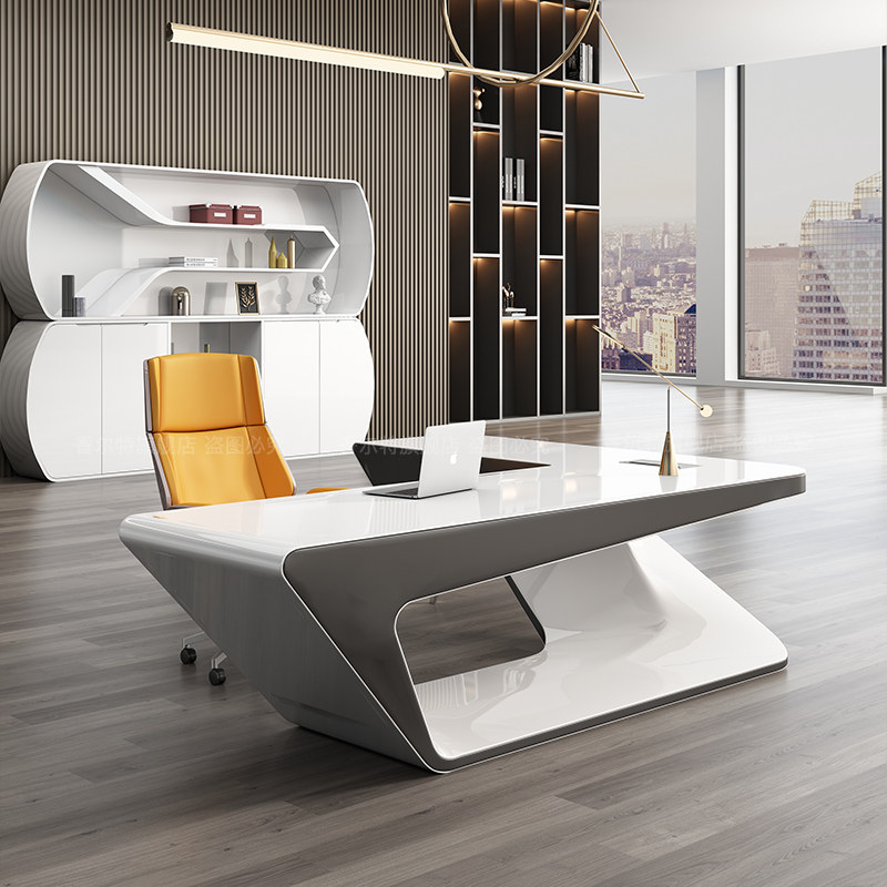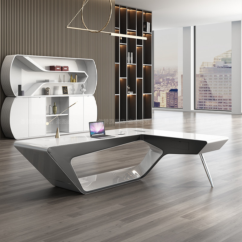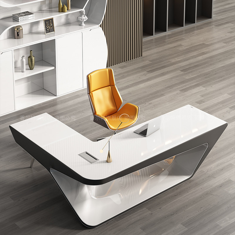 Creative fashion boss desk simple white paint boss table president table modern office desk and chair combination