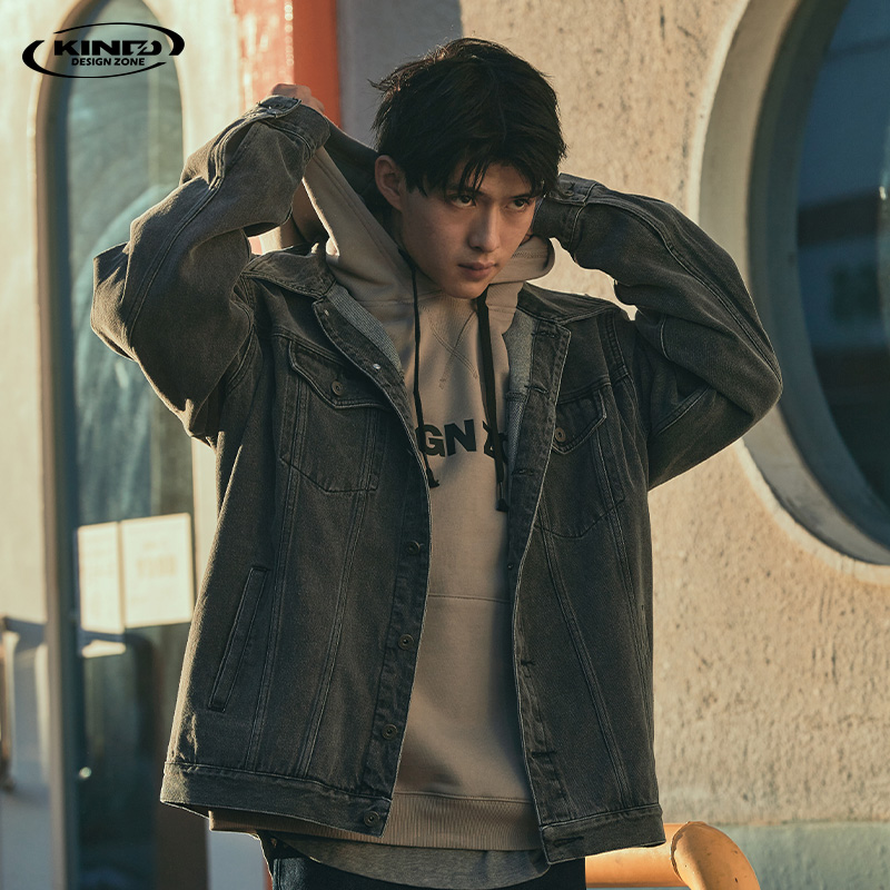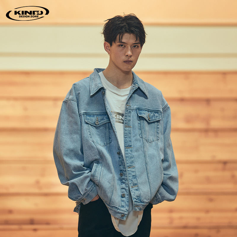 KKZ tooling denim jacket male spring autumn large version OVERSIZE loose Korean version Multi-pocket tide card lovers jacket-Taobao