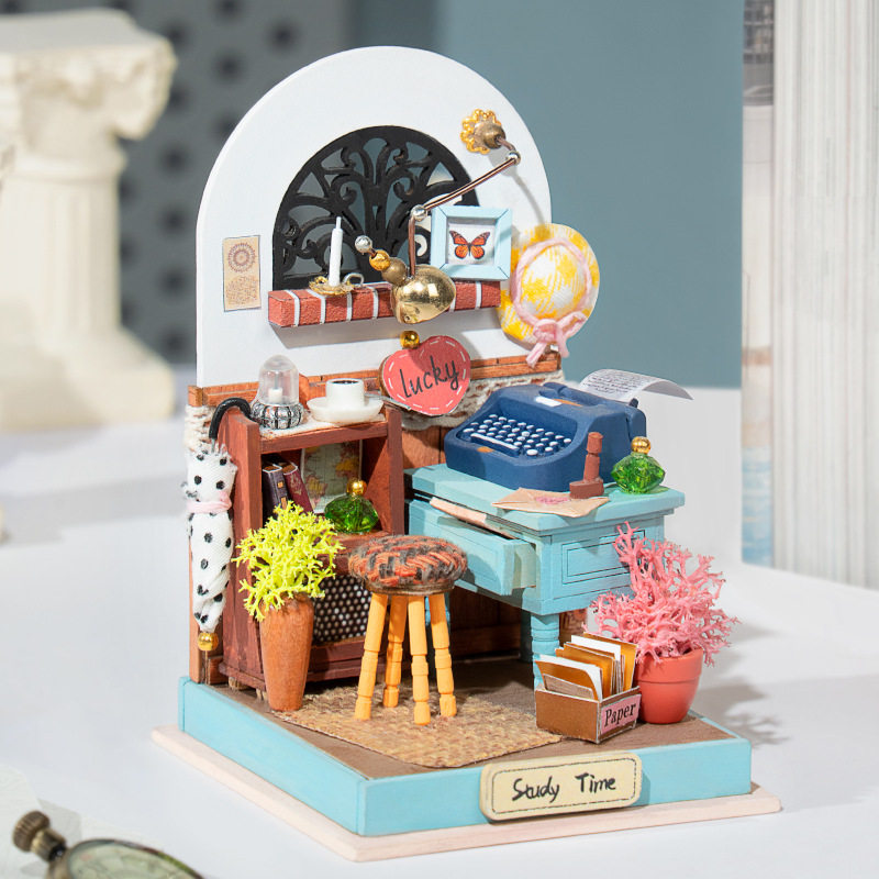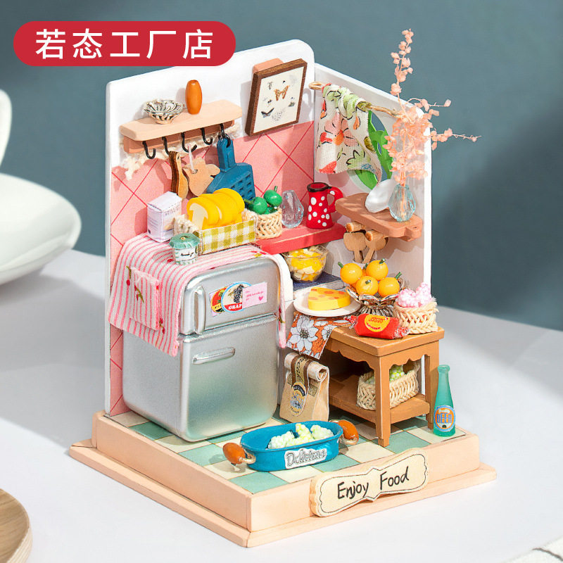 Wooden hand assembled small room Solid puzzle small house toy square inch Kitchen Bedroom Book Room Bathroom