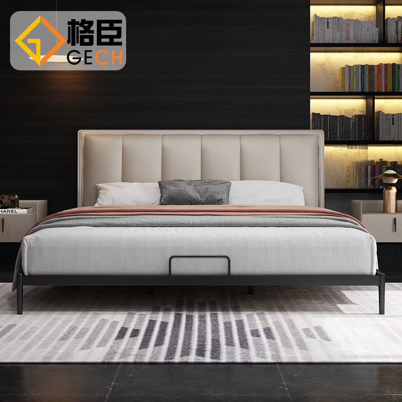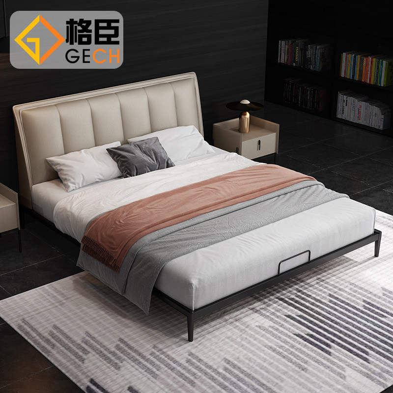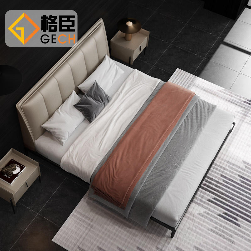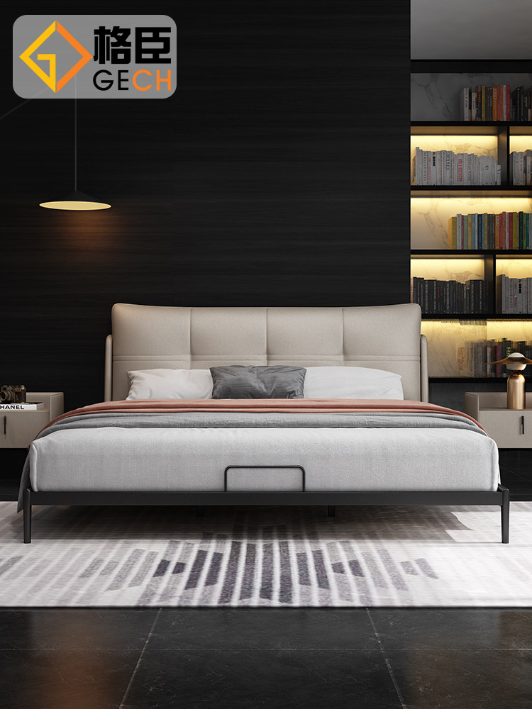 Italian minimalist leather bed Modern minimalist master bedroom double bed Small apartment light luxury leather bed 2021 new
