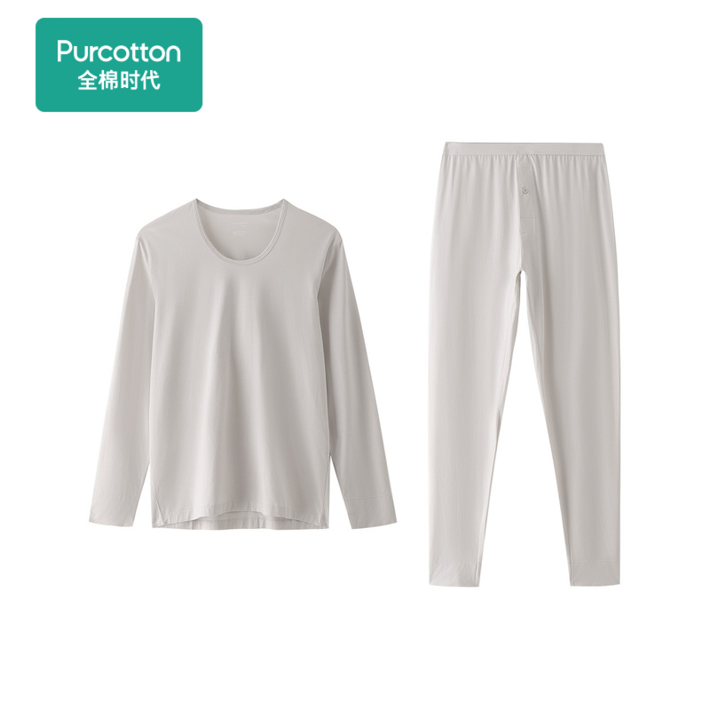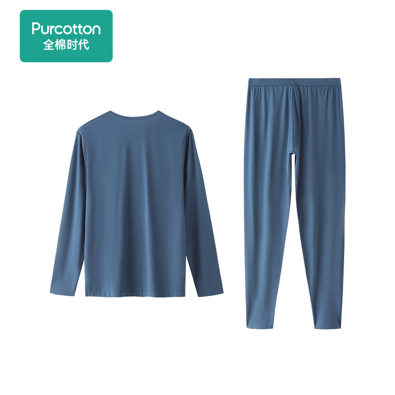 Full cotton era Spring new men's warm underwear commuter U collar elastic knitted spring clothes spring pants bowtie undersuit