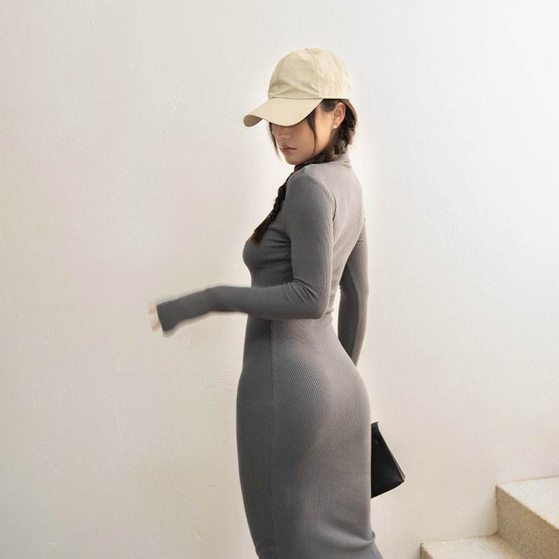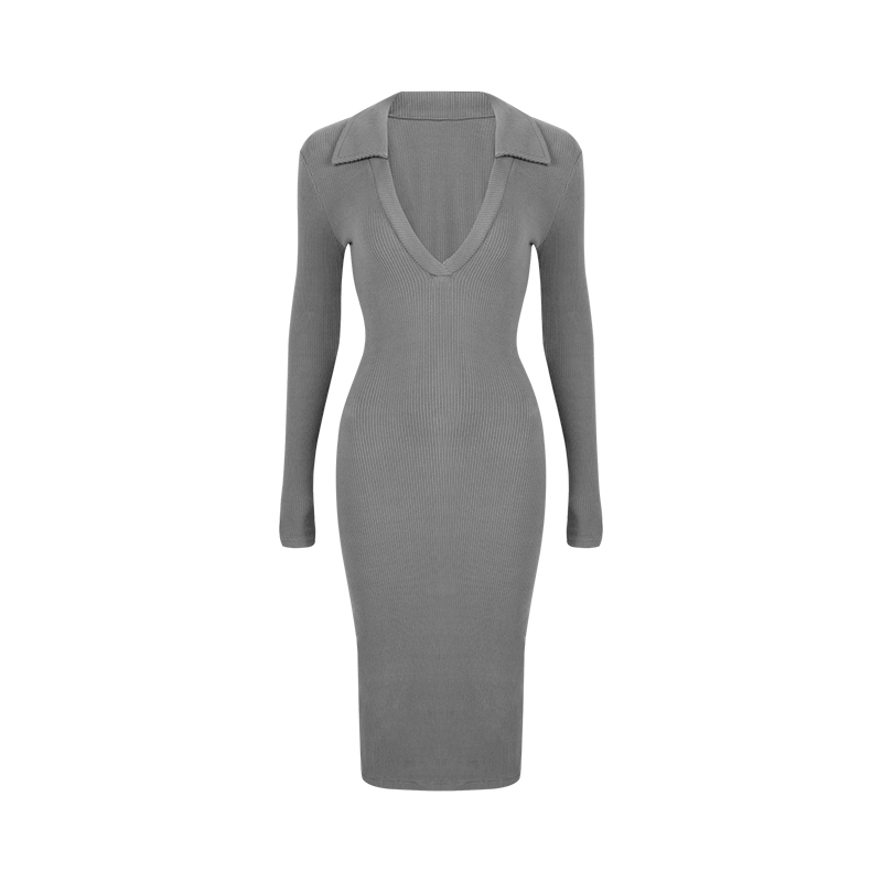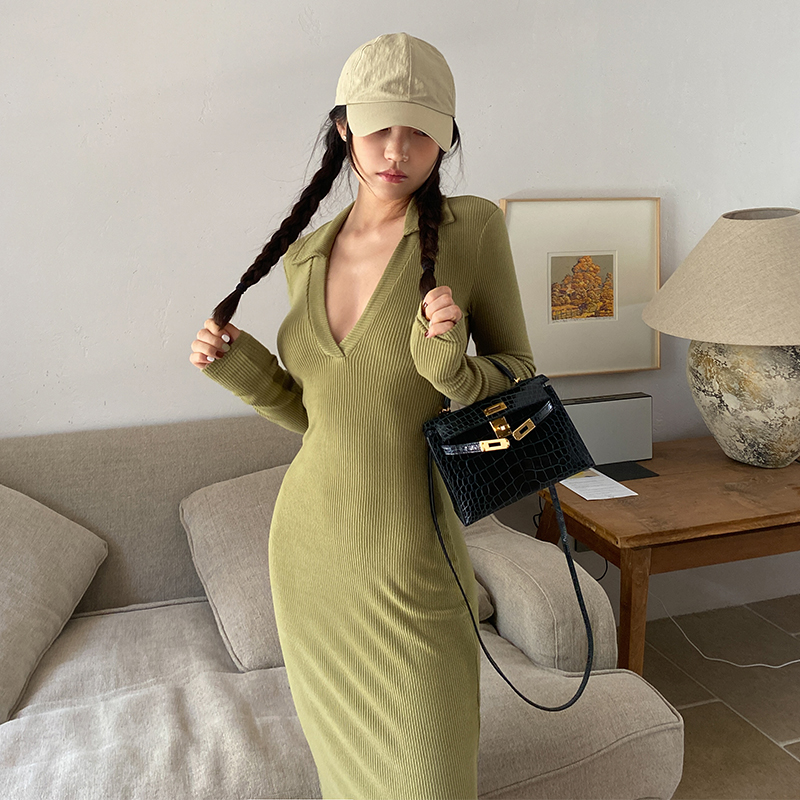LEIYU deep V-neck knitted dress female 2021 autumn European and American ins hot girls sexy tight-fitting mid-length skirt
