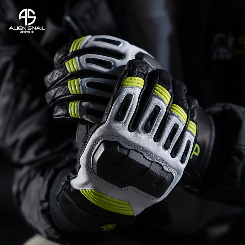 Alien snail T6 short genuine sheepskin motorcycle gloves four seasons carbon fiber shell anti-fall touch screen motorcycle gloves