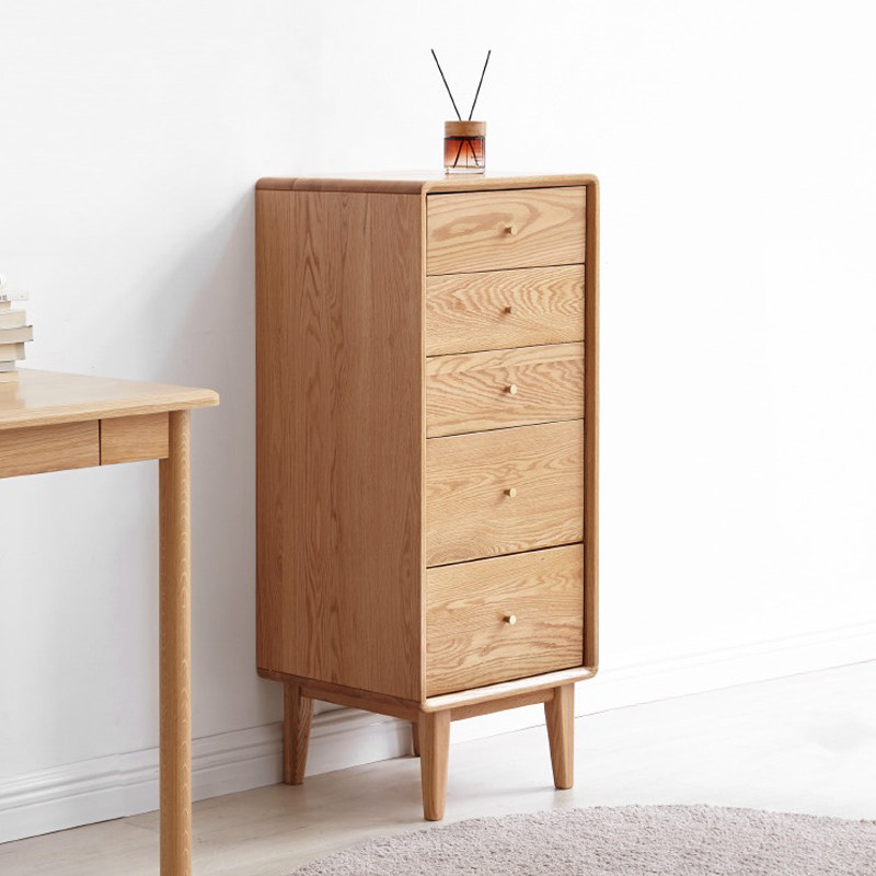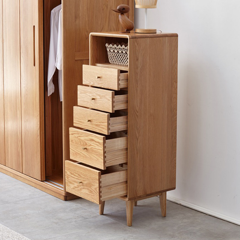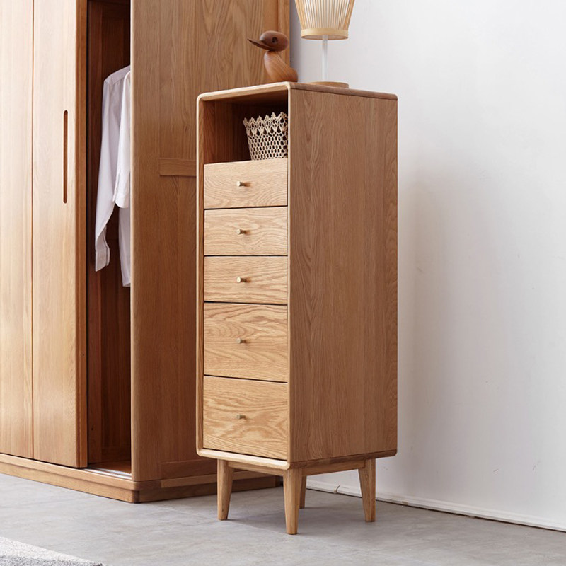 All solid wood chest of drawers oak storage cabinet chest of drawers Nordic modern minimalist bedroom drawer storage box cabinet narrow cabinet