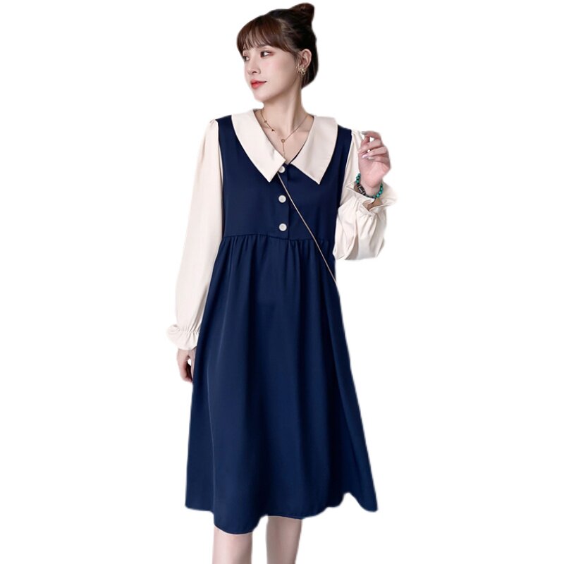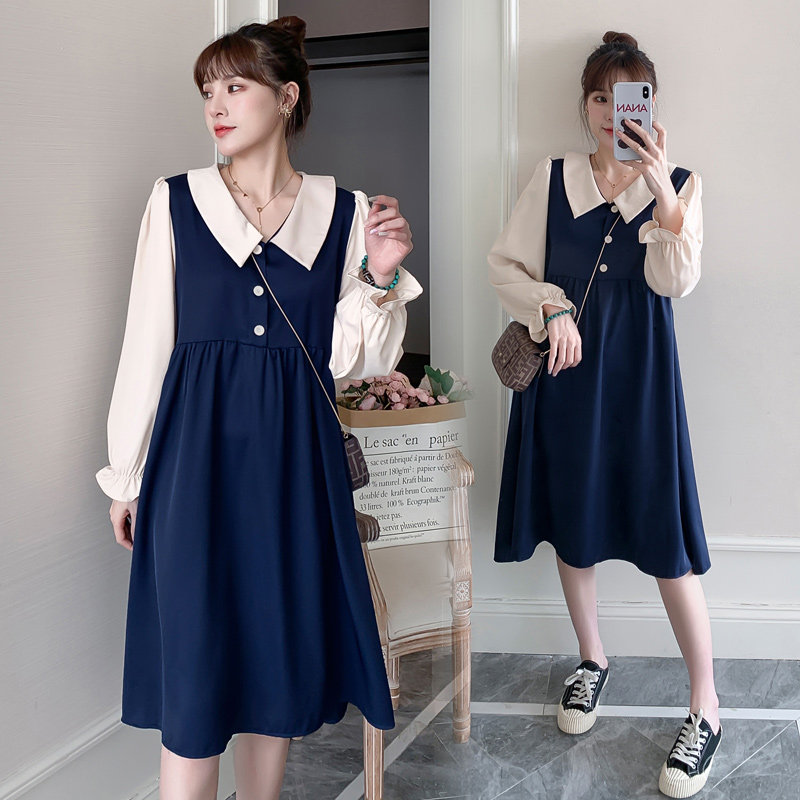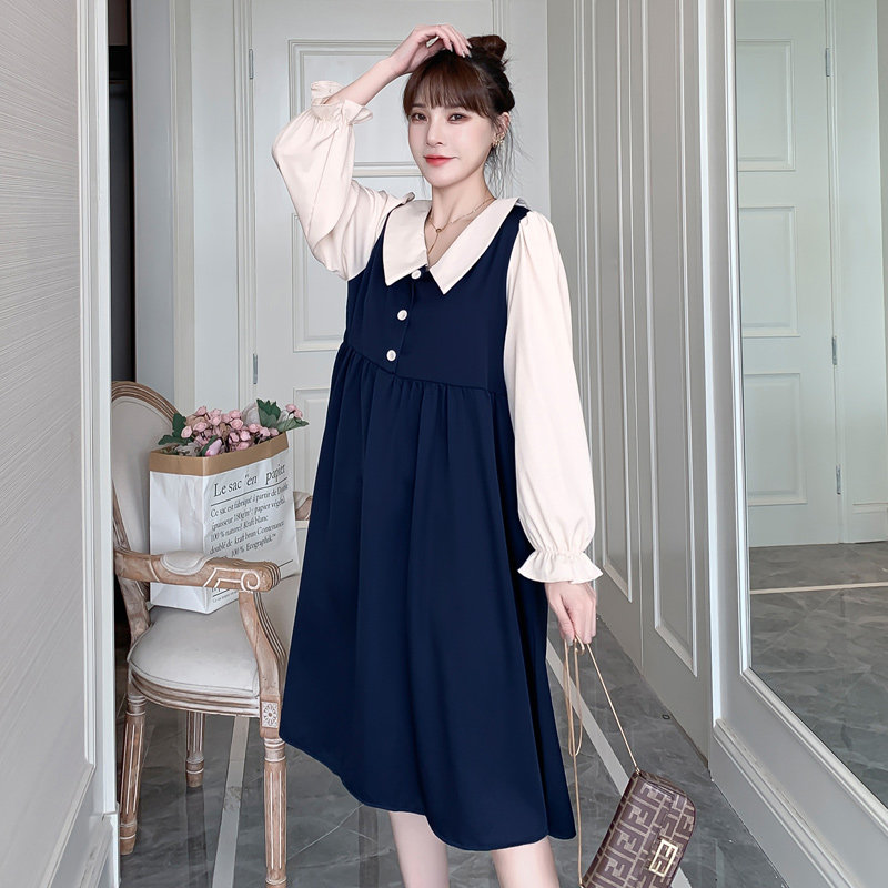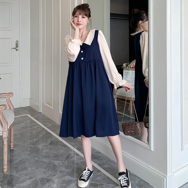 Maternity dress autumn dress 2021 new Korean version long-sleeved bottoming shirt large size pregnancy top autumn long skirt
