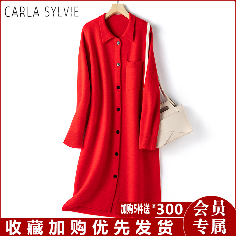 Red Cashmere Knit Foreign Fashion International Big Cards Casual Fashion Temperament Spring Autumn Season New Year Wardrobes Big Size Women's Dress