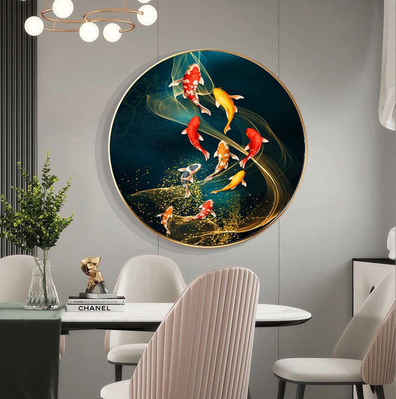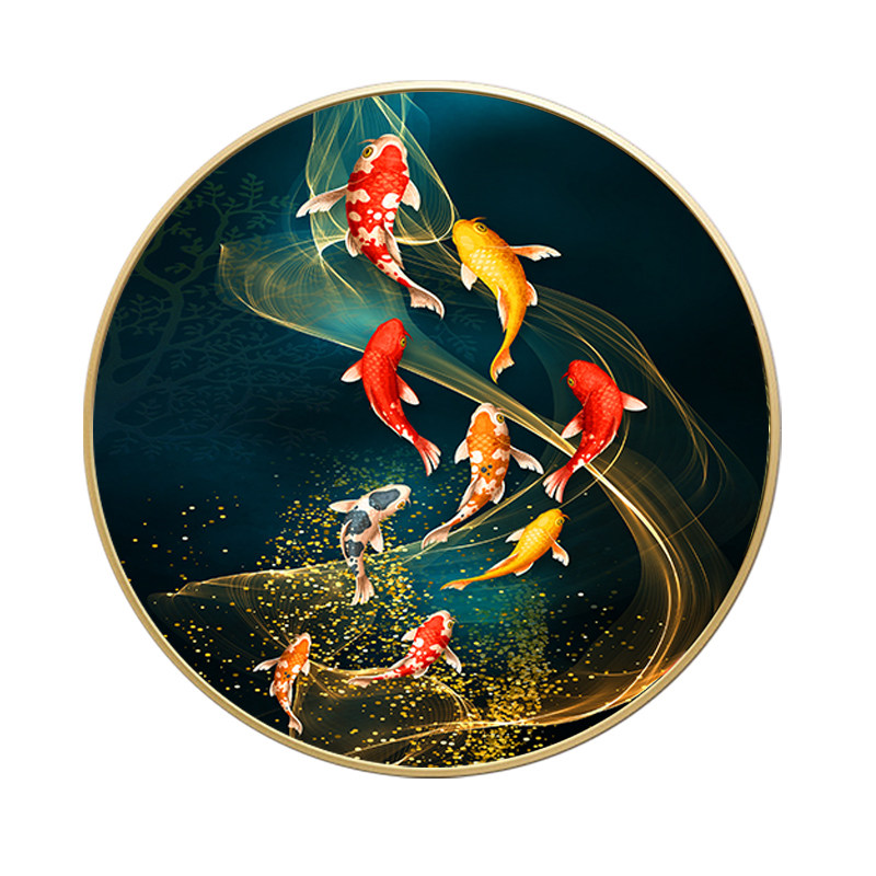Printed cross stitch 2022 new thread embroidery living room lucky nine fish round modern Chinese style porch painting embroidery 2020