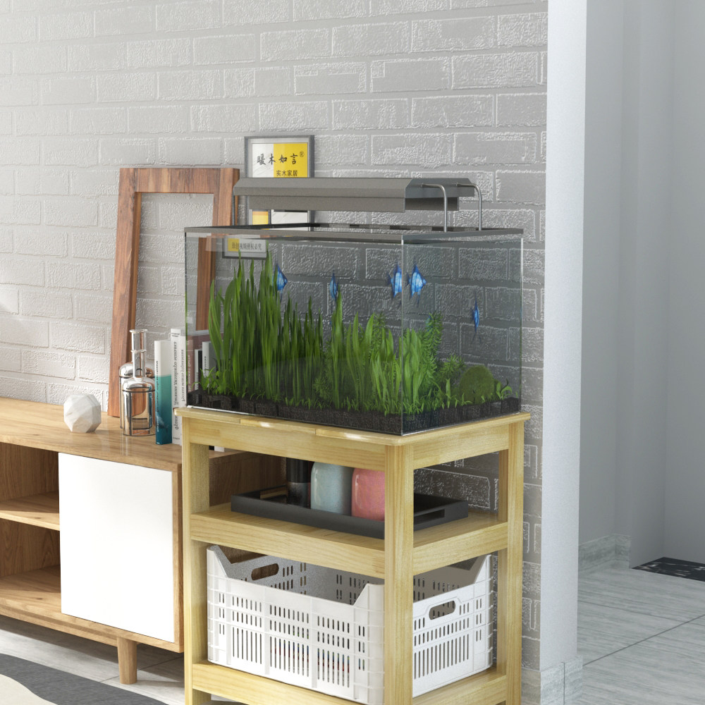 Warm wood Ruyan solid wood fish tank base shelf waterproof multi-layer modern minimalist hall balcony grass tank floor cabinet