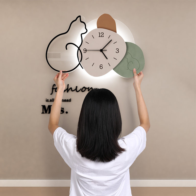 Modern minimalist cartoon hanging clock living room clocks and watches personalities creative hanging walls Home Fashion Nordic net Red Decorative Clock