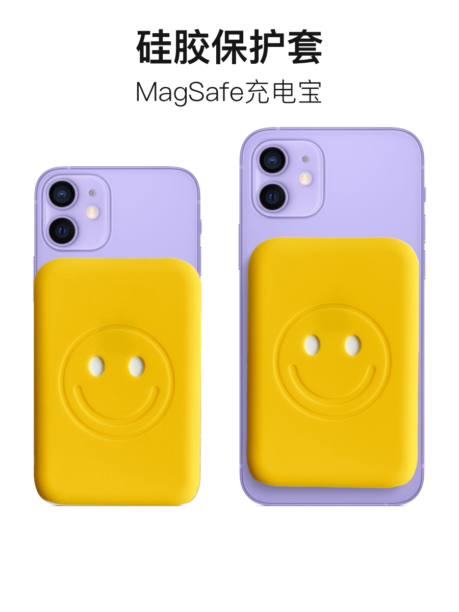 Suitable for Apple magsafe external power supply protective cover charging treasure silicone cover smiling face tide cool anti-scratch soft shell