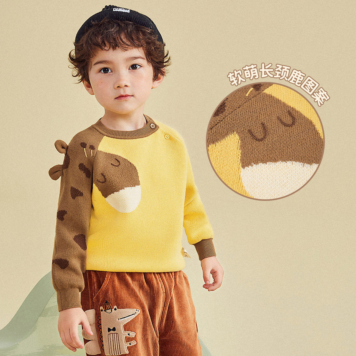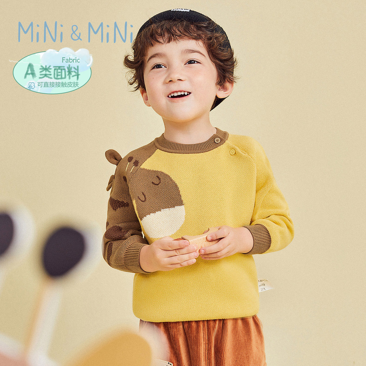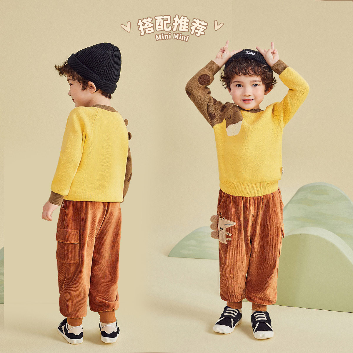 minipeace Taiping bird boy clothing boy cute cartoon bump color sweater autumn winter new round collar knit sweaters