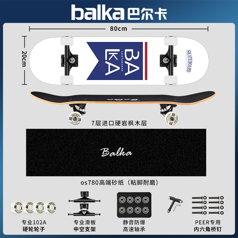 Balka Skateboard Professional Board Adult Beginner Brush Street Action Short Board Boys and Girls Kids Double Cocked Four Wheel Skateboard
