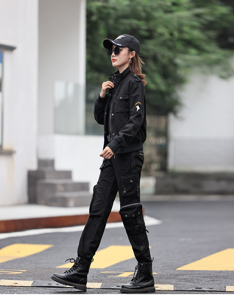 Outdoor sports overalls women's multi-bag casual pants for training military fan pants wear-resistant tactical pants military straight long pants