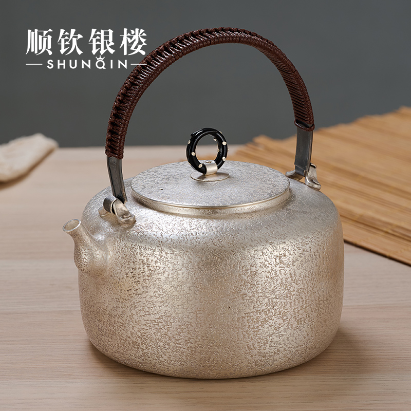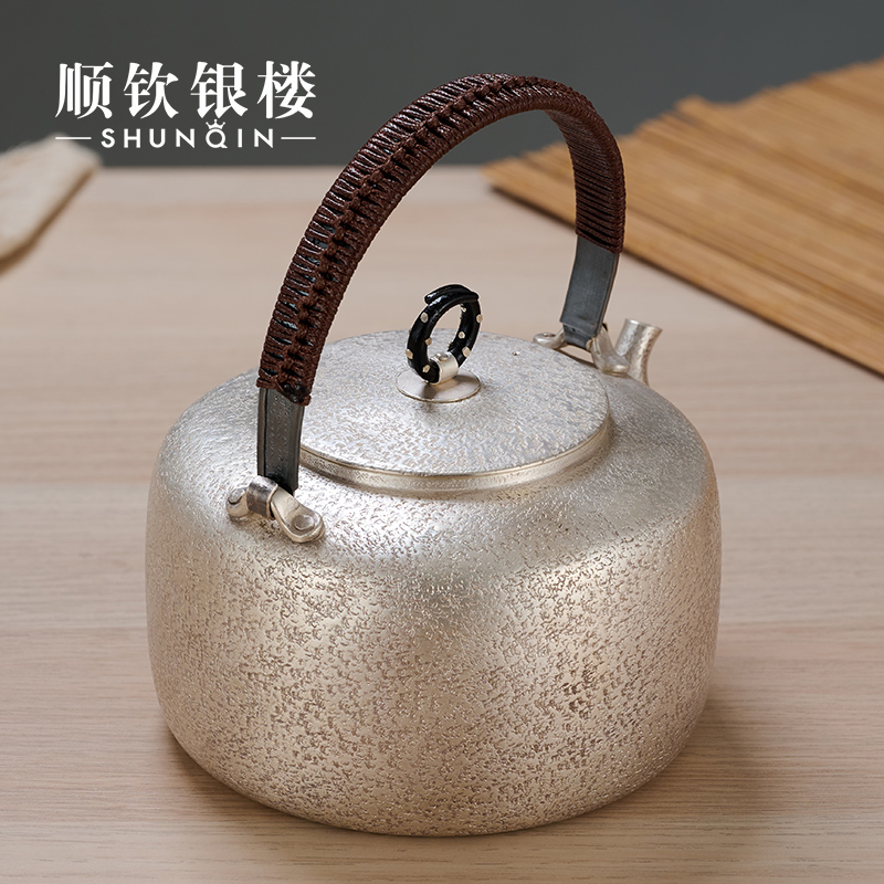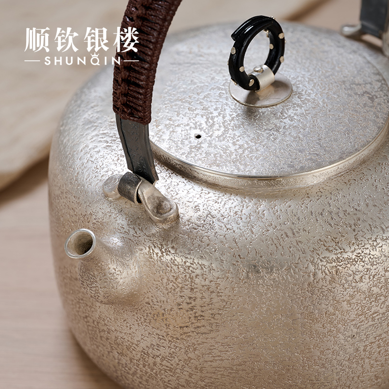 Shunqin Yinlou S999 sterling silver hammered kettle pure handmade kettle household high-end ornaments tea set collections