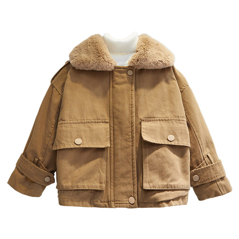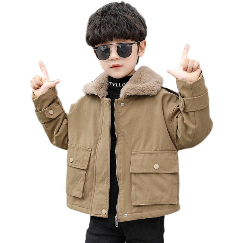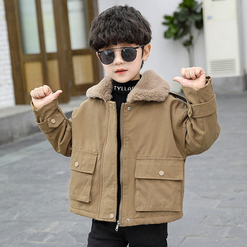 Children's suit jacket 2022 spring and autumn new cotton coat Korean version of the Western style mink fur collar plus velvet boys warm parka cotton coat