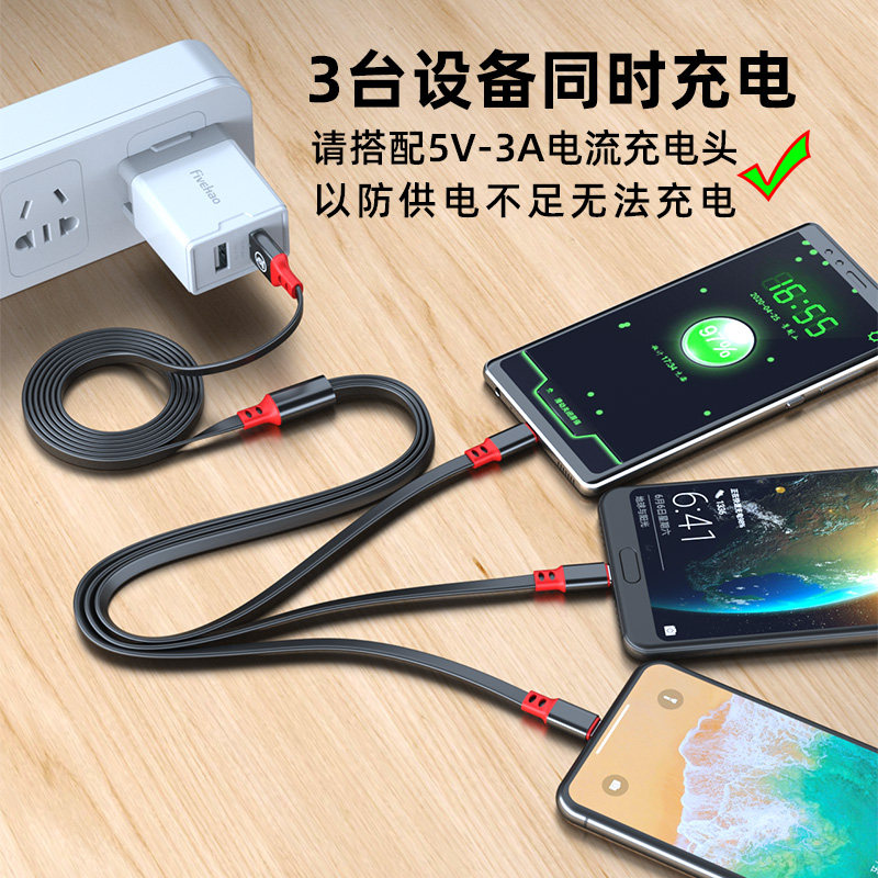 Black and red one drag three charging line (black and red) one drag three wires 3 1A plug